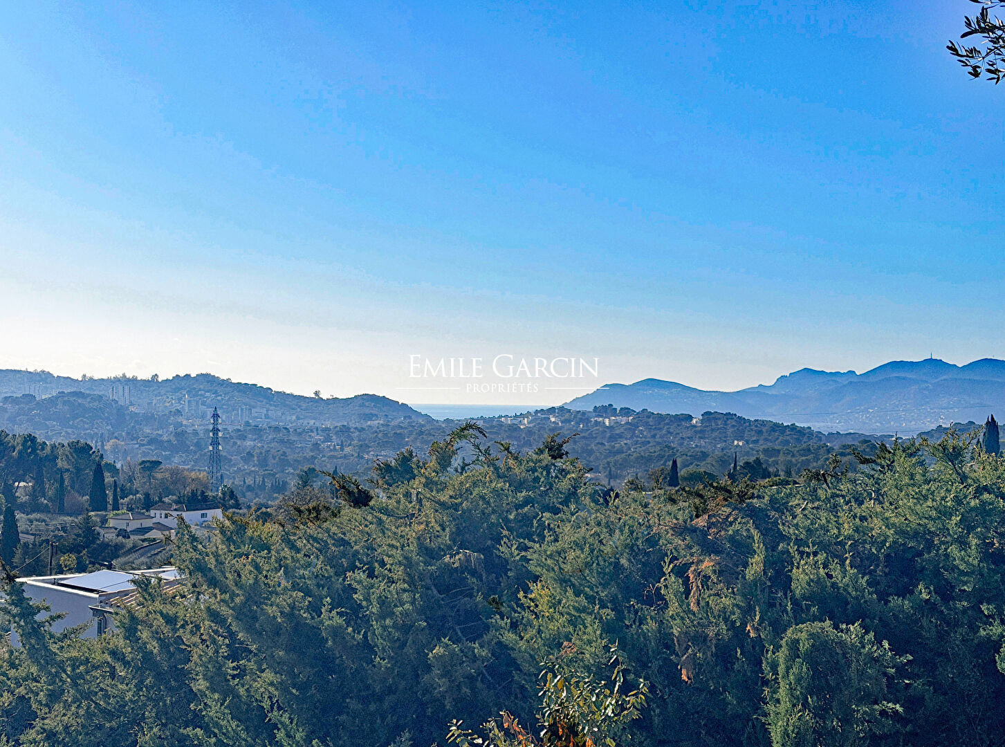 Édifiée sur un superbe terrain de 1 900 m², la propriété offre une vue panoramique dégagée sur les collines, avec un agréable aperçu mer, invitant à la détente et à la contemplation.