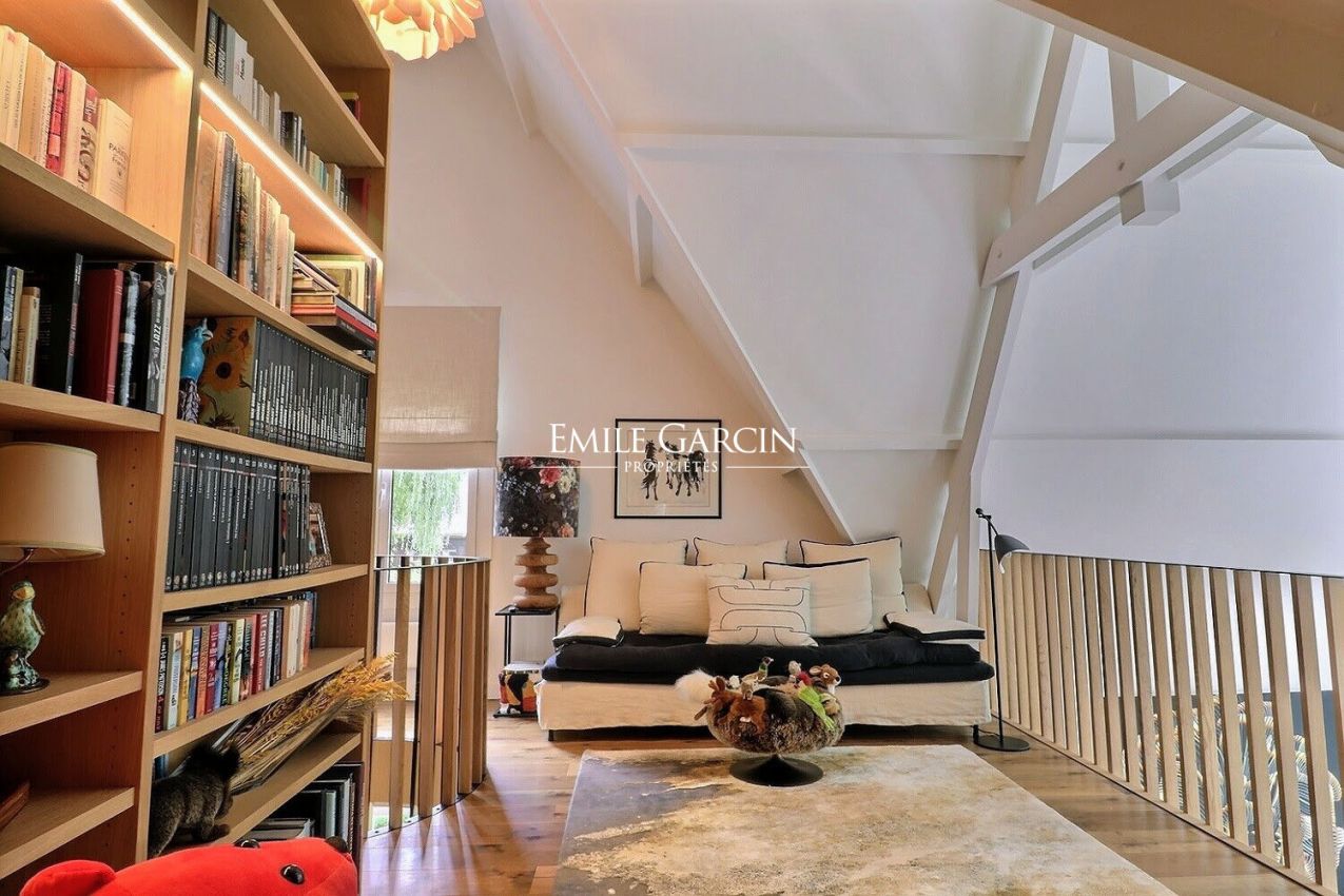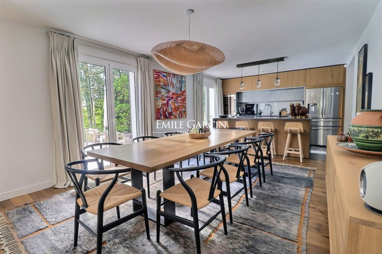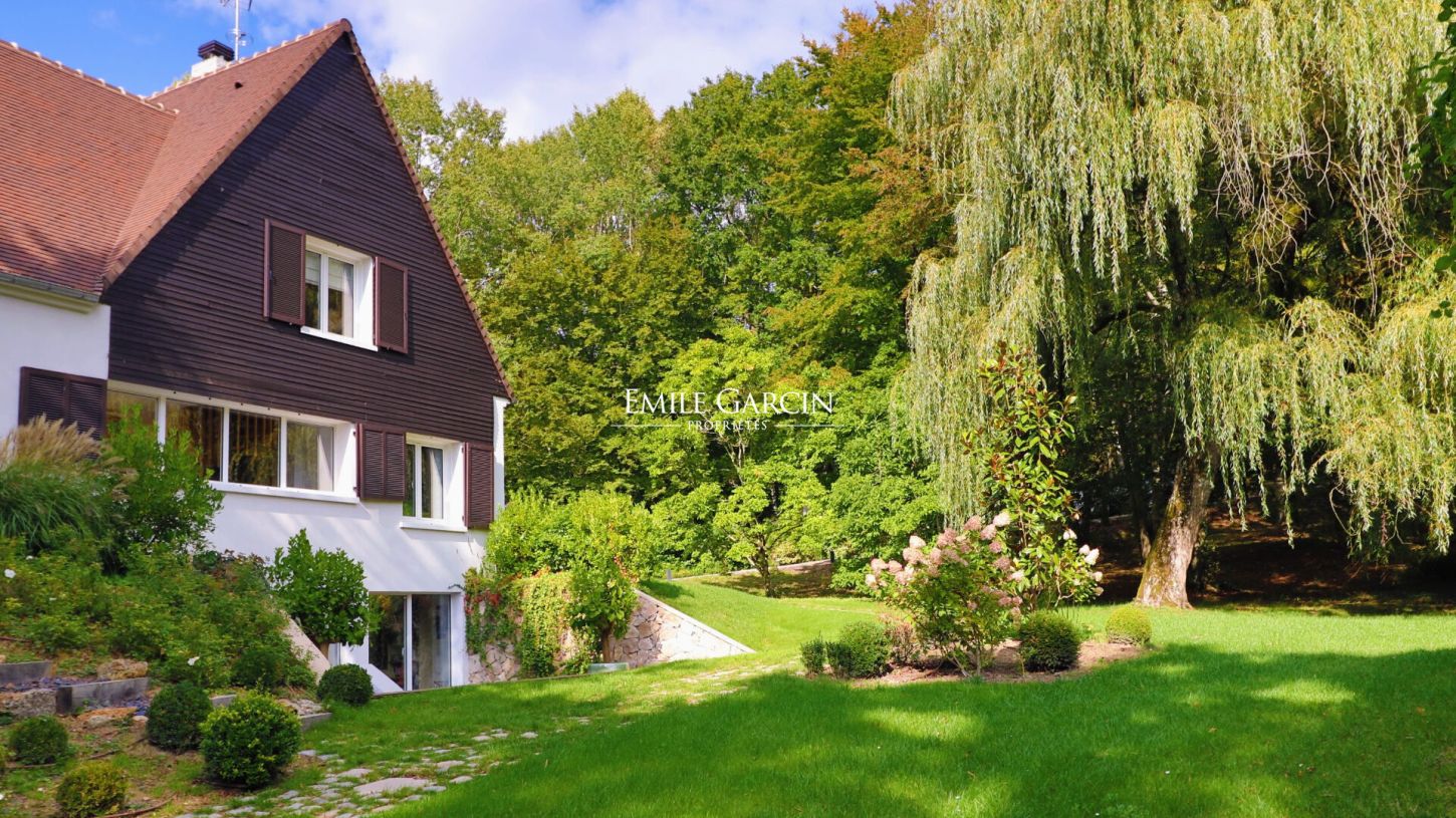 A 40 minutes de Paris par l'A13 , l'A14 ou l'A15, à 25 minutes de Giverny ou La Roche Guyon, dans un magnifique domaine privé et sécurisé, au coeur de la forêt , donnant sur un golf réputé comprenant également piscine et tennis, se niche cette maison d'architecte en excellent état à l'abri de toutes nuisances. D'une superficie de 355m2 loi Carrez et 450m2 au sol, la maison comprend de très beaux espaces de réception, une bibliothèque en mezzanine, 4 chambres dont deux avec salle d'eau avec douche et WC et une suite parentale.