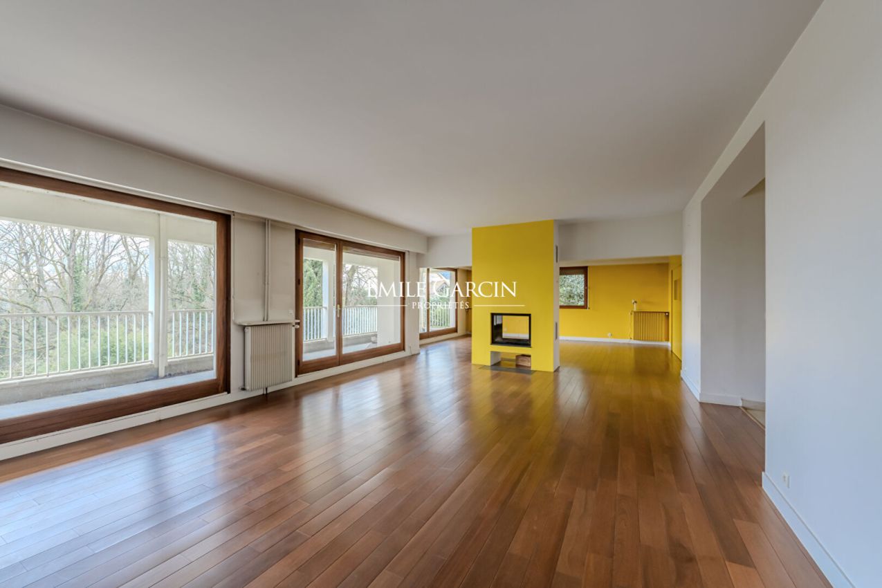 Nichée au coeur d'un environnement verdoyant et recherché de Feucherolles, à seulement 3 km de Saint-Nom-la-Bretèche et 12 km de Saint-Germain-en-Laye, cette magnifique propriété de 560 m² offre un cadre de vie privilégié. Implantée sur un terrain arboré de 2 310 m², elle séduit par son potentiel, ses volumes exceptionnels et sa luminosité. Répartie sur quatre niveaux, cette demeure familiale est composée de la manière suivante : une vaste pièce de vie de 83 m² comprenant un salon avec cheminée centrale, une salle à manger et une grande cuisine, le tout ouvrant sur une terrasse de 40 m² exposée sud. Aux étages, une suite parentale de 57 m² avec dressing et salle de bains privative, six autres chambres se partagent trois salles de bains. Un large palier aménagé en bureau/bibliothèque et un espace détente sous les combles ajoutent au charme de cette maison. Le rez-de-jardin, baigné de lumière, propose un espace polyvalent de 75 m², idéal pour une salle de jeux, de sport ou un studio de musique, complété par une chambre avec salle d'eau. Un studio indépendant de 26 m² complète ce niveau. Un garage double et plusieurs places de stationnement extérieures complètent l'ensemble. Travaux de rénovation à prévoir. A proximité : écoles, collèges, ramassages scolaires pour les lycées et le Lycée International. Accès rapide aux gares et aux axes routiers A13/A14 pour rejoindre La Défense et Paris.