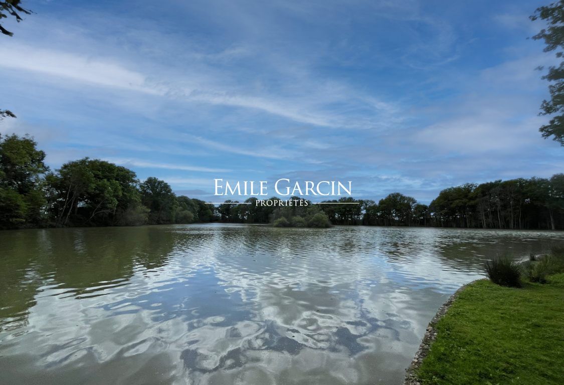 Le parc boisé, avec ses allées en étoile majestueuses, est le témoin d'un passé prestigieux. Au coeur de ce paysage enchanteur se trouve une maison contemporaine, alliant confort moderne et raffinement. Elle offre un vaste séjour lumineux ouvert sur la nature, ainsi que cinq chambres. L'un des joyaux de cette propriété est son étang de 4 hectares, véritable miroir d'eau aux reflets changeants, et son petit pavillon.