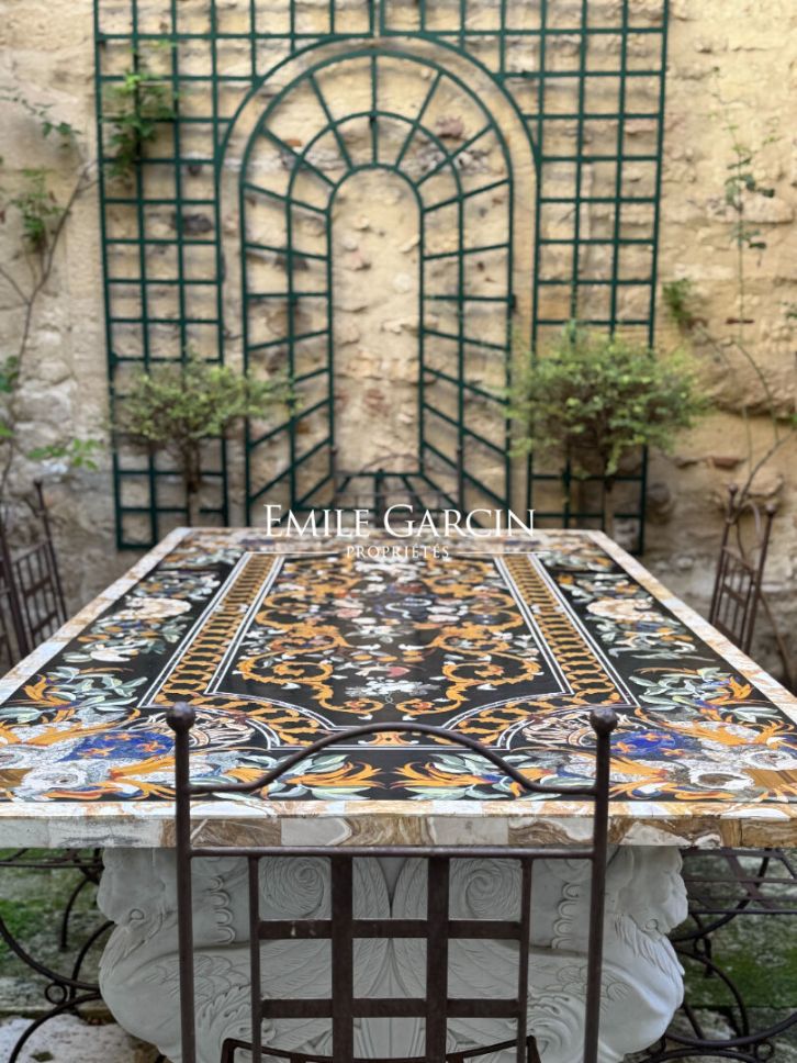 Dans un lieu calme et secret de la ville, cette vaste demeure de près de 600 m², issue de la réhabilitation d'un ancien couvent, offre de très beaux volumes. L'entrée se fait par un large portail ouvrant sur une première cour de type « cour anglaise », pavée de pierres, arborée et fleurie (oliviers, cyprès, agrumes, jasmin...).