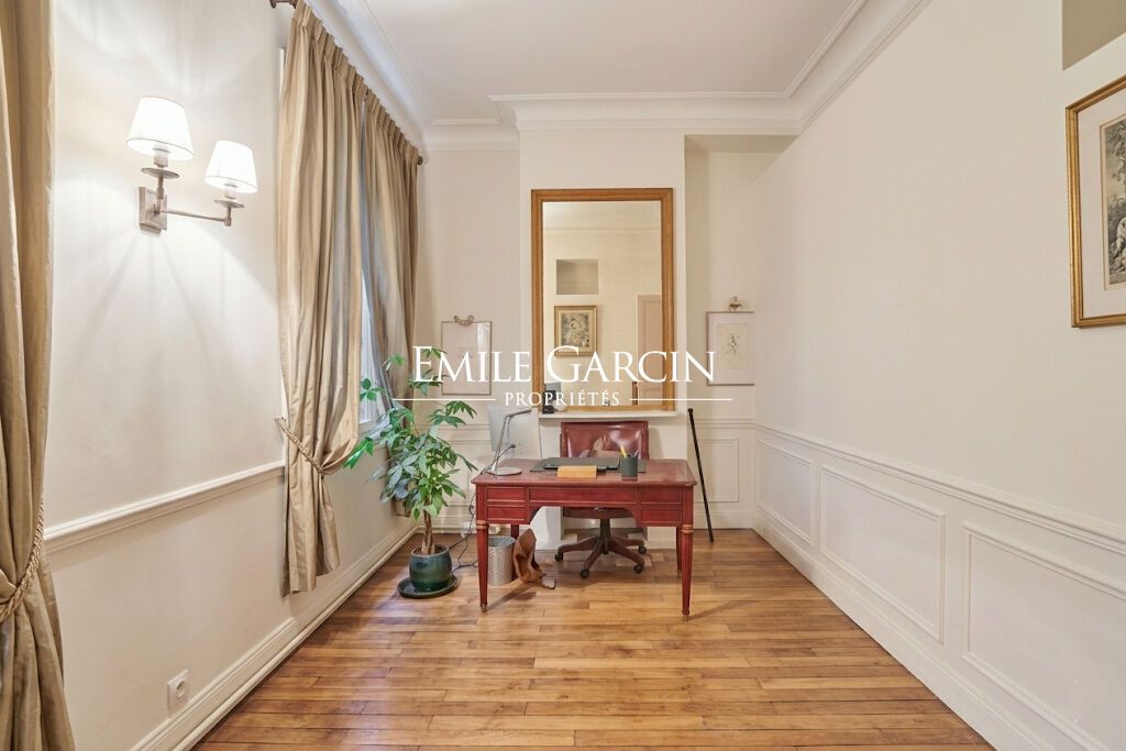 L'appartement se compose de: - D'une vaste galerie d'entrée - D'un séjour lumineux aux beaux volumes - D'une élégante salle à manger de réception - D'une cuisine dinatoire entièrement aménagée et équipée - Quatre chambres - De deux salles de douche et deux W.C invités Annexes: +Un débarras sur le palier de service (avec arrivée d'eau, évacuation et espace buanderie) +Une chambre de service de 9,14 m² au 5/ étage +Un studio indépendant sécurisé de 12 m² au 5/ étage +Une double cave, dont une partie aménagée en cave à vin, sécurisée par porte blindée Résidence sécurisée avec présence d'une gardienne. Stationnement disponible en sus, sur demande.