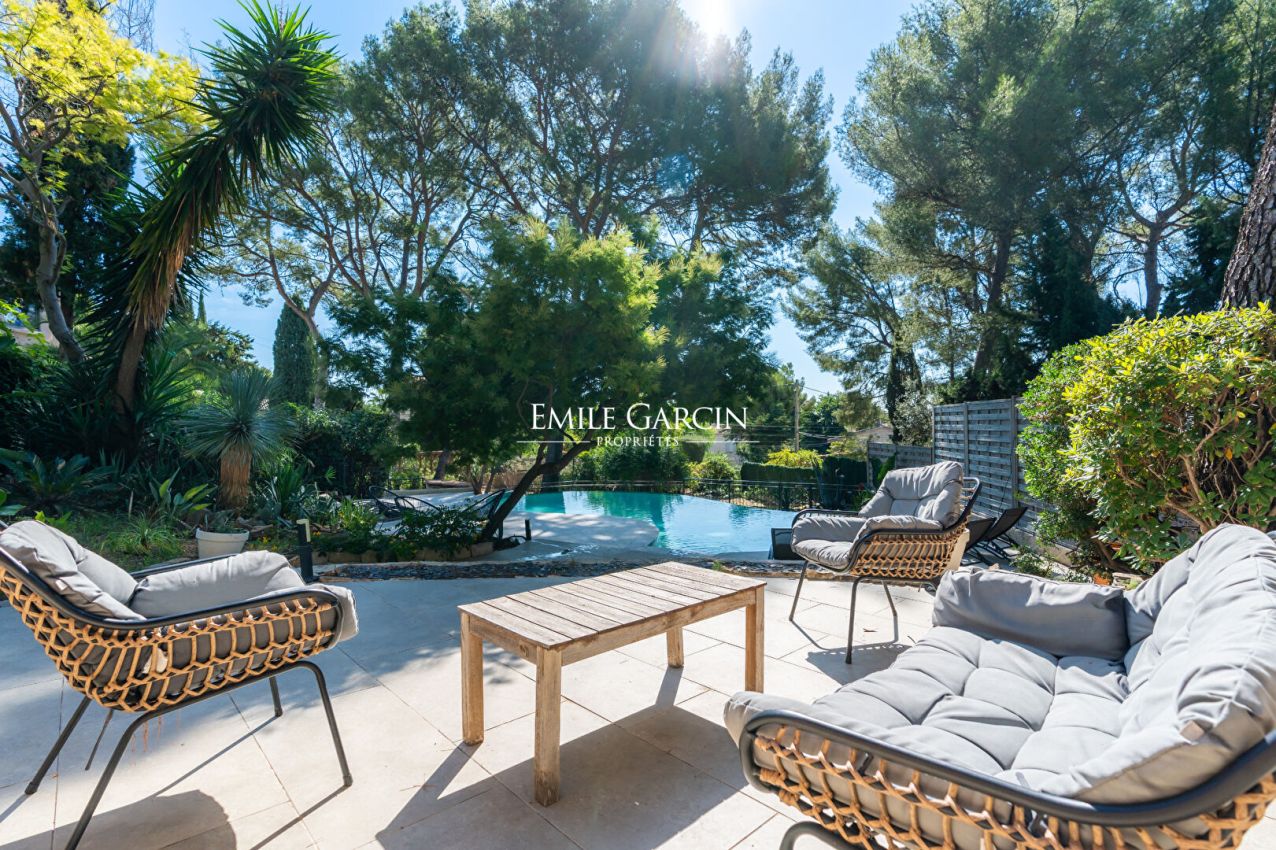 Le joli jardin arboré, la piscine à débordement, les terrasses et les espaces détentes offrent un cadre de vie à la fois familial et convivial. Le rez-de-chaussée, pouvant être indépendant, permet à ceux qui le souhaitent, de bénéficier d'un potentiel revenu locatif.