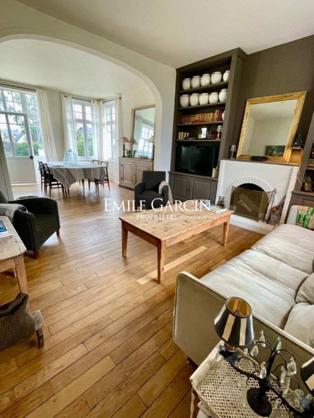 A seulement 150 mètres de la grande plage et à proximité immédiate des commerces, cette élégante maison en pierre des années 1940, entièrement restaurée, conjugue charme authentique et confort contemporain. Blottie au coeur d'un jardin bucolique bénéficiant d'une triple exposition, cette maison de caractère s'ouvre sur une entrée pleine de charme qui mène à un vaste espace de vie à la décoration soignée. Une cuisine conviviale , prolongée par une terrasse ensoleillée, invite aux instants de partage et de gourmandise. Le rez de chaussée abrite également une élégante suite , tandis que l'étage accueille une spacieuse suite parentale ainsi qu'une chambre pleine de charme, dotée de sa salle d'eau et sa terrasse.