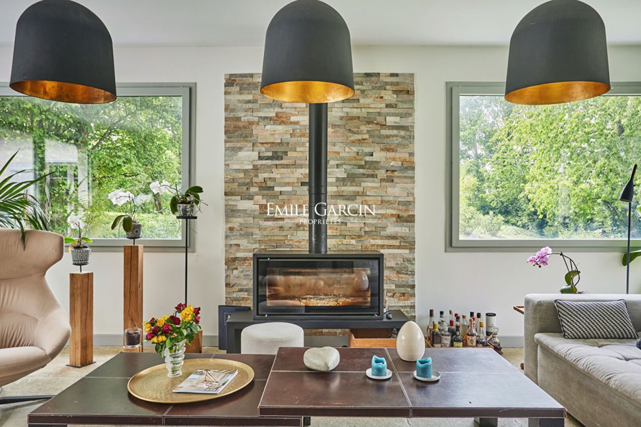 A St Nom la Bretèche, à proximité immédiate des commodités (commerces, écoles) , cette maison d'architecte de 269 m² est édifiée sur un terrain de 2059 m² . En parfait état avec une extension réalisée en 2015, elle est composée de la manière suivante : Au rez de Chaussée : une entrée, une cuisine, un salon TV/musique avec cheminée, salle à manger, un bureau, une chambre avec douche et WC. Une terrasse d'environ 60 m2 ouvrant sur l'extérieur. Au 1er étage : Quatre chambres, une salle de bains avec douche, WC séparés. Dans l'extension : Au rez de chaussée : un salon de 56 m² avec cheminée ouvrant sur une terrasse. Au 1er étage : Une suite parentale avec salle de bains avec douche et WC, dressing. Une cave partielle avec lingerie, cave à vin, garage complètent ce bien. Jardin paysager. Cette maison bénéficie d'un diagnostic de performance énergétique (DPE) B.