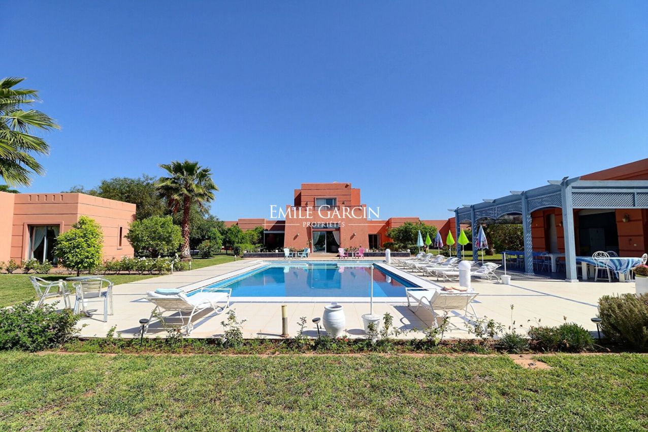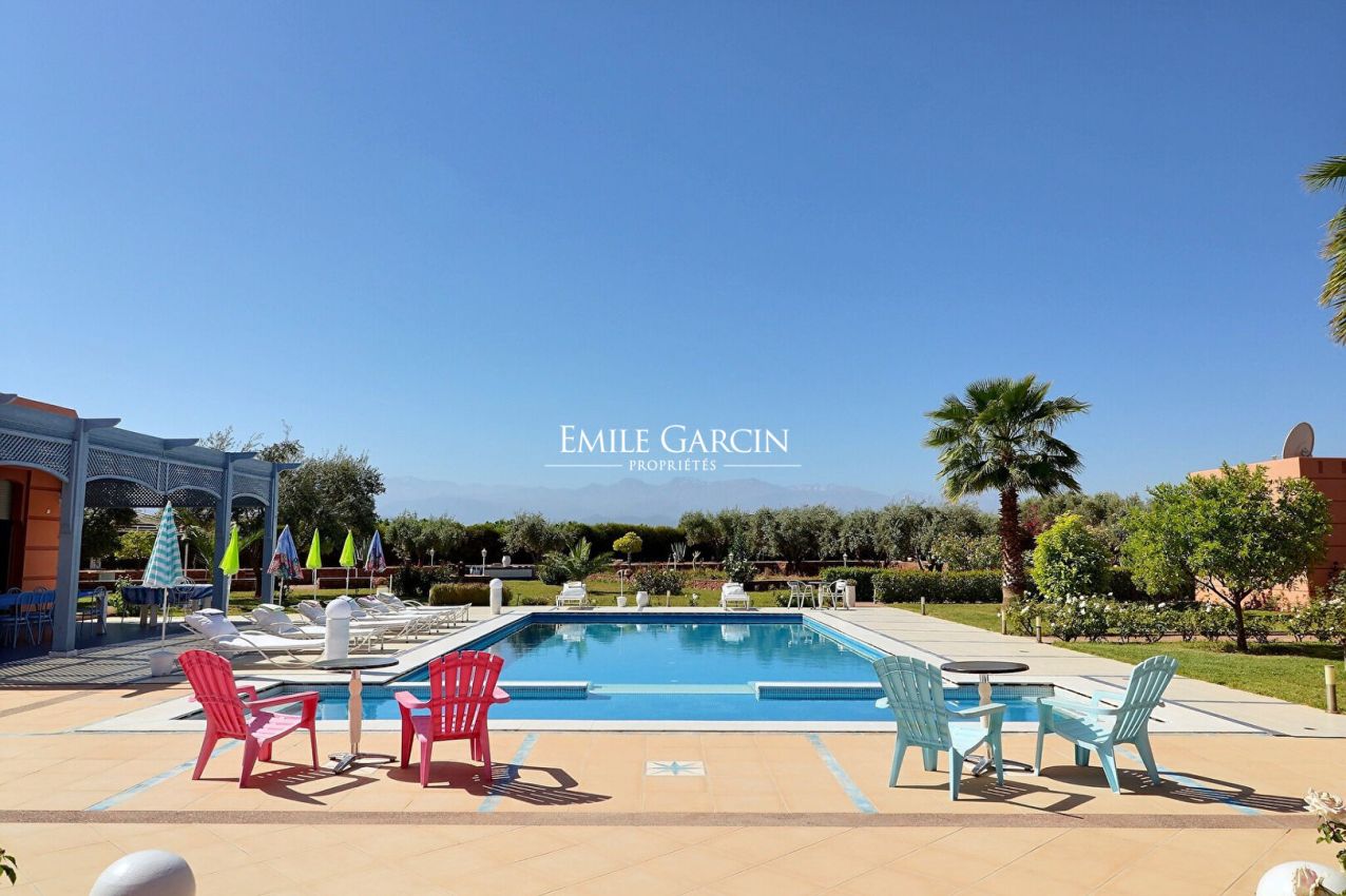 A l'extérieur, 2 bungalows chacun avec un salon, une chambre et une salle de bain, avec accès direct au jardin, pool house équipé d'une cuisine et d'un bar, jardin arboré d'oliviers et d'agrumes disposant d'un système d'arrosage automatique et d'un puits de 150 m ainsi qu'une jolie piscine.