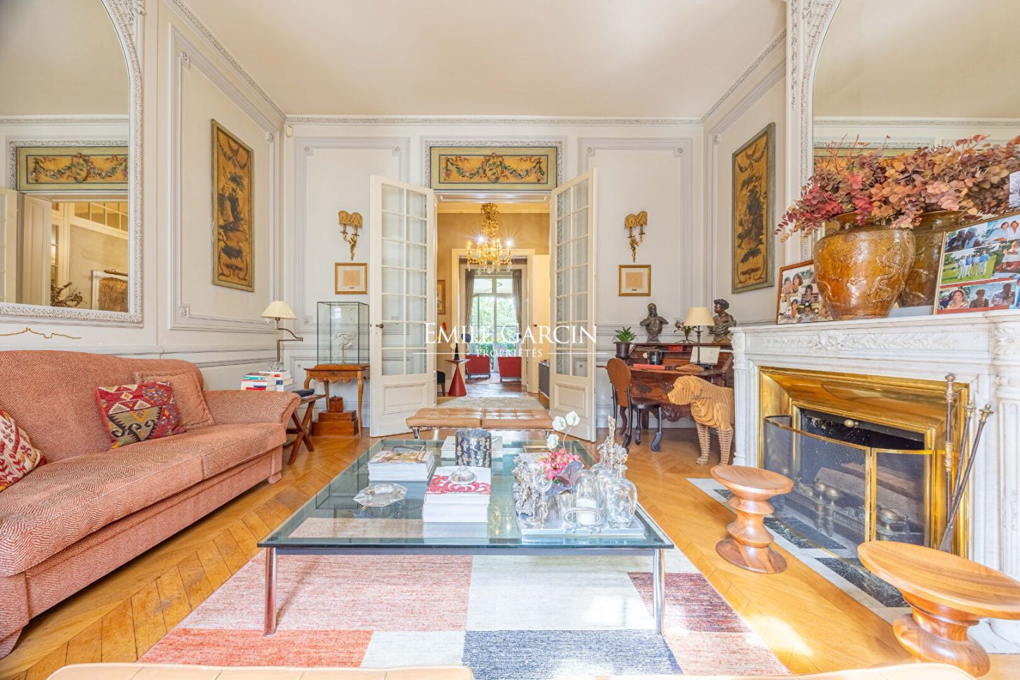 Les espaces de réception sont sublimés par des très belles cheminées et s'enchaînent avec fluidité : grand salon, petit salon, salle à manger sont propices à recevoir comme à savourer le quotidien dans un cadre raffiné - La cuisine, entièrement équipée et aménagée, s'intègre avec élégance à cet ensemble. Puis, presque comme un secret, le regard s'ouvre sur le jardin privatif : un véritable écrin de verdure, rare en coeur de ville, qui prolonge naturellement les pièces de vie et confère à cet appartement un esprit de maison. La partie nuit accueille 3 chambres et 2 salles de bains, dont une suite parentale majestueuse avec dressing et accès direct au jardin, pour des réveils en toute sérénité.