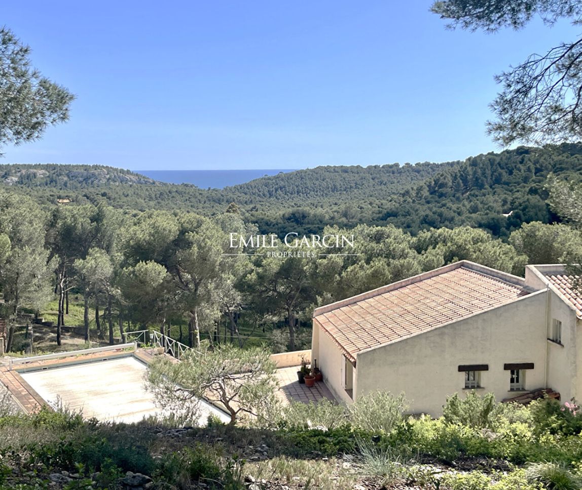 Située à Ensuès-la-Redonne, au coeur de la Côte Bleue, cette villa de charme bénéficie d'un environnement exceptionnel entre pinède et essences méditerranéennes, sur un vaste terrain arboré de 5 700 m² avec vue dégagée sur les pins et aperçu mer.