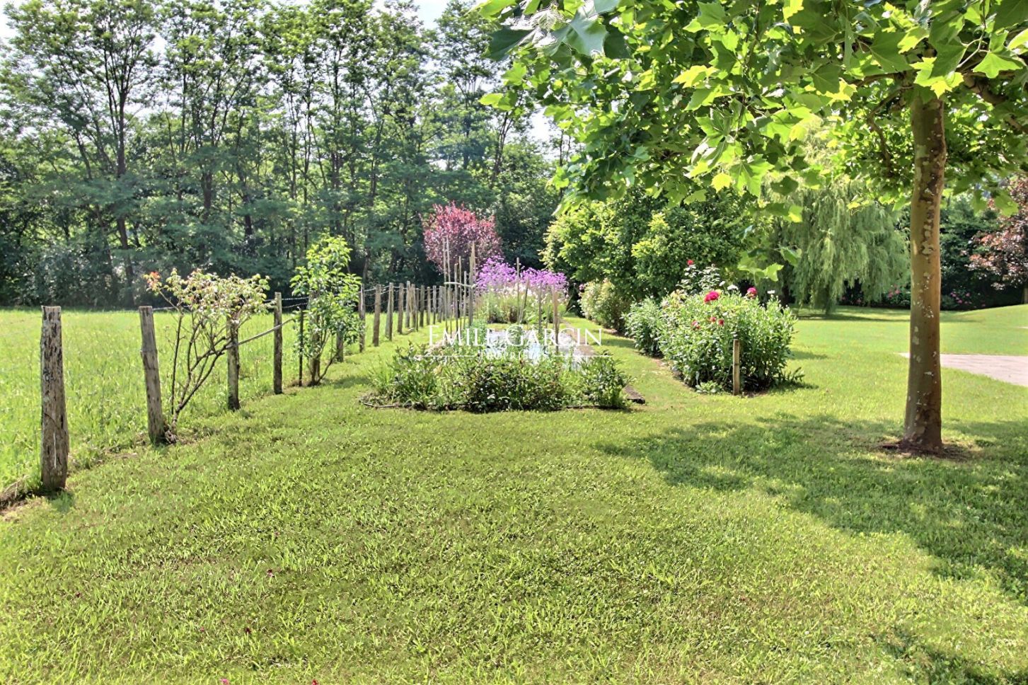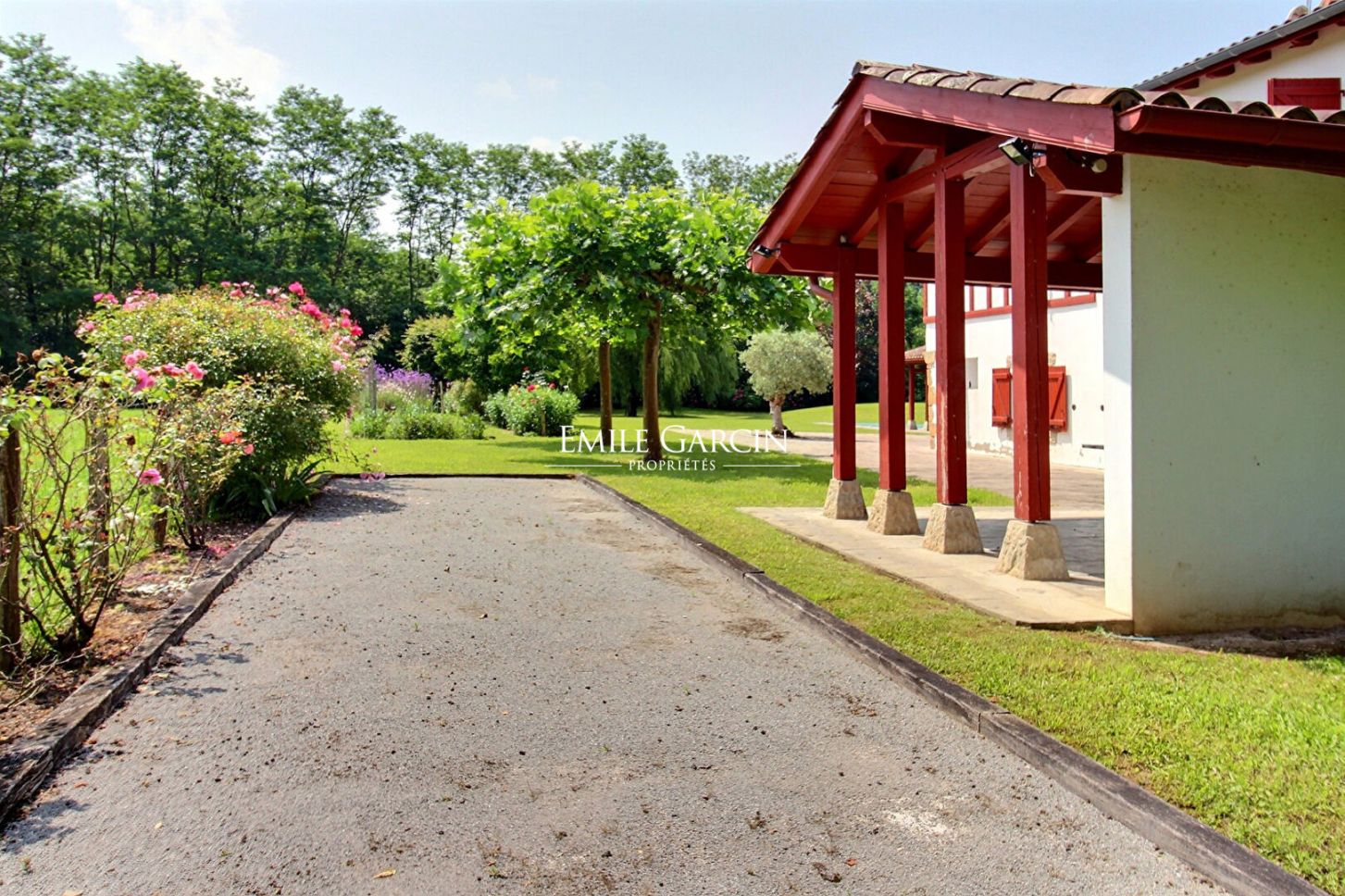Le jardin, d'environ 5365 m², structuré et fleuri, entouré d'arbres et de verdure accueille un joli potager ainsi qu'un terrain de pétanque.