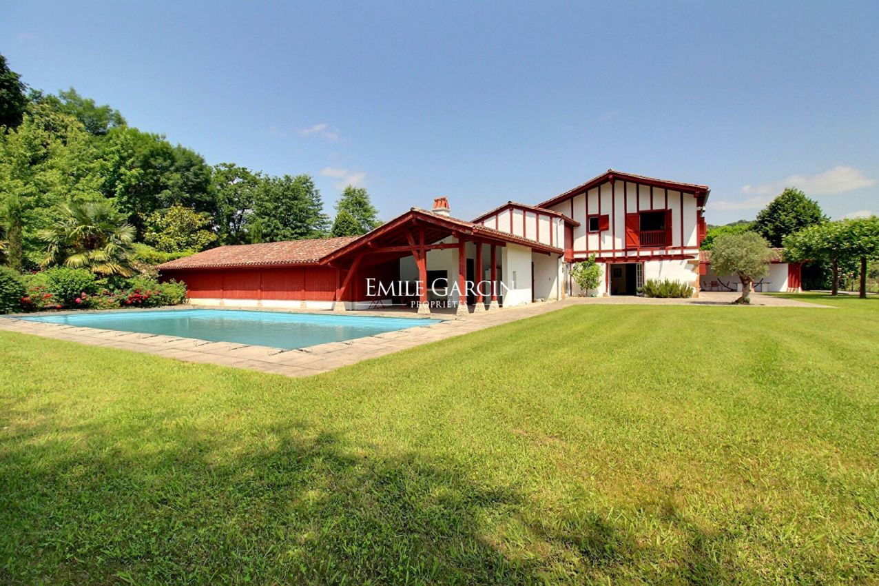 Entourée de végétation et bercée par le calme environnant, cette demeure singulière de style basque d'environ 250 m² bordée de terrasses ravie par ses volumes et son caractère affirmé.