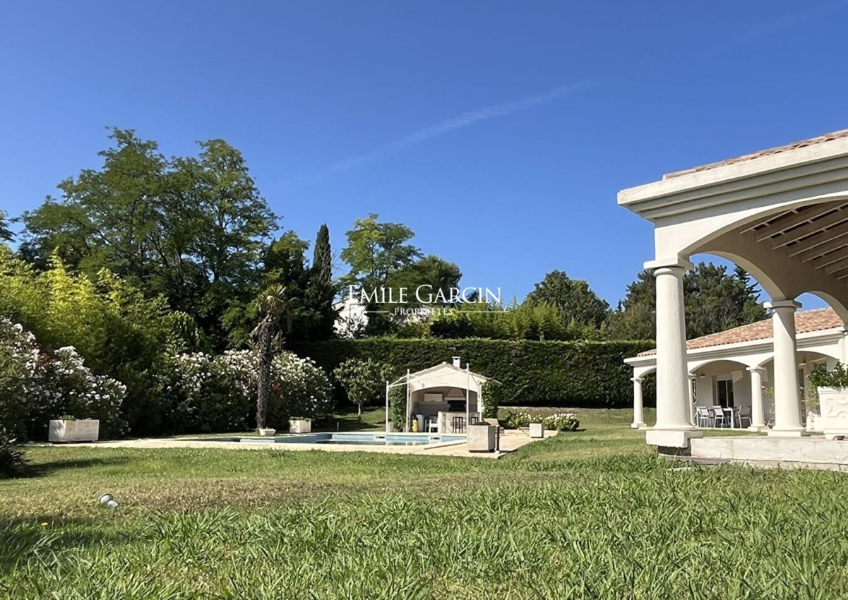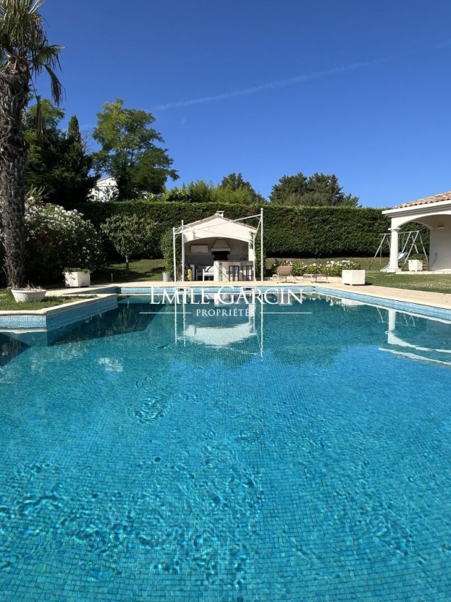 Au nord et à 10 minutes du centre d'Aix-en-Provence, cette propriété de plain pied à vendre de 215 m² , au sein d'un jardin paysager de 2 659 m², se love dans un coin recherché de la campagne aixoise, au calme absolu. La maison a été construite il y a un peu plus de 20 ans, dessinée par un architecte, dans un esprit volontairement contemporain où la lumière est omniprésente. Grand salon salle à manger de 76 m², cuisine ouverte, 4 chambres. Une belle piscine traditionnelle complète ce bien, avec sa cuisine d'été couverte. Les atouts majeurs : le calme, la lumière et aucun escalier ! A découvrir.