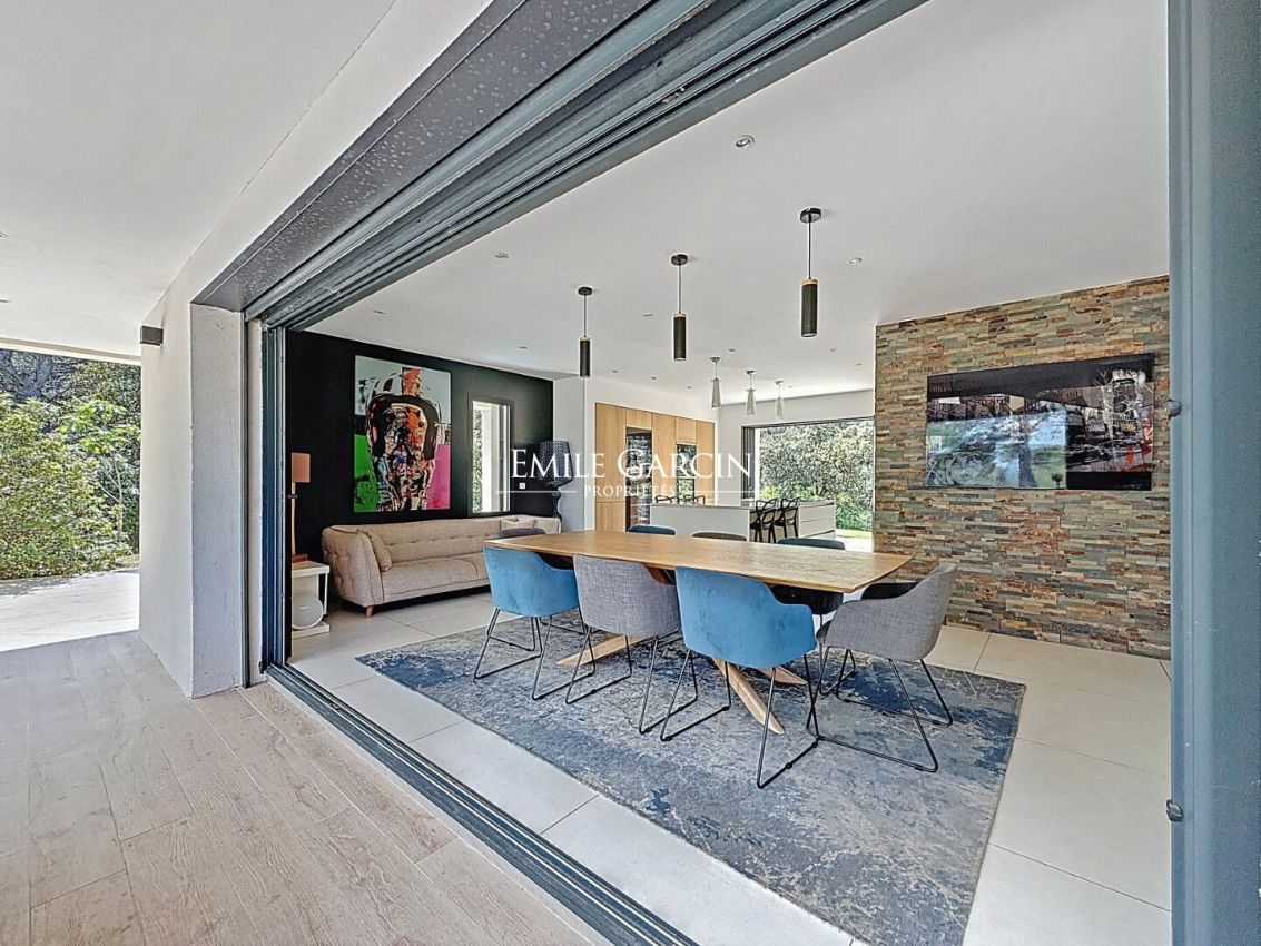 En position haute, Très belle propriété contemporaine d'exception avec vue panoramique sur le Luberon et le Ventoux. Sur les hauteurs de Cavaillon, site prisé de la colline Saint-Jacques, dans un environnement naturel de pins et de garrigue, sur un terrain paysager de plus de 5 000 m².