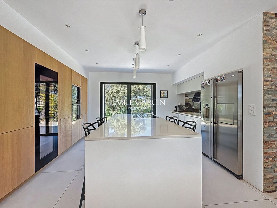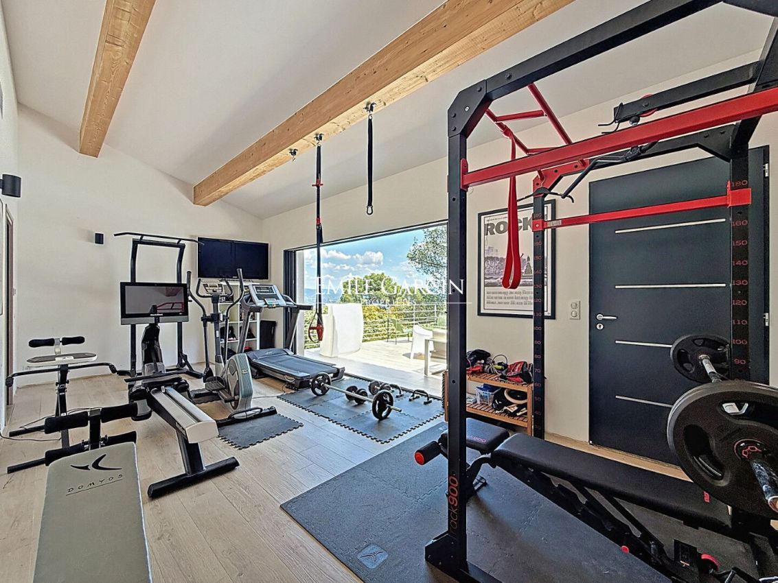 Réalisée avec des matériaux de belle facture et un goût sûr, elle offre environ 320 m² habitables . Les pièces de vie, baignées de lumière grâce aux larges baies vitrées, s'ouvrent toutes sur les terrasses et la piscine à la vue dominante sur la vallée du Luberon et le Mont Ventoux. L'espace intérieur comprend une vaste pièce à vivre avec cuisine entièrement équipée et salle à manger, un salon cinéma, ainsi qu'une salle de sport. Côté nuit, la maison dispose sur deux niveaux, de cinq chambres en suite, chacune avec sa propre salle d'eau, dressings, offrant confort et intimité à tous les occupants. L'ensemble est complété par un grand garage occupant tout le sous-sol, idéal pour plusieurs véhicules et rangements. L'accès est entièrement sécurisé, garantissant calme et sérénité. Un lieu rare, conjuguant modernité, élégance et panorama exceptionnel, au coeur d'un cadre naturel.