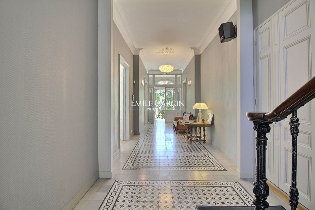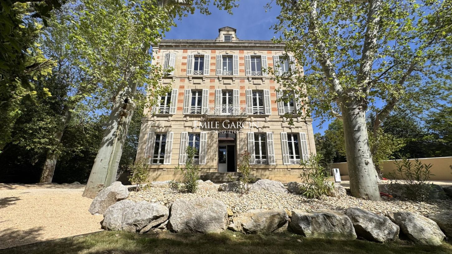 A pied des commodités, superbe Maison de Maître de 1876 développant plus de 500 m², entièrement rénovée avec des matériaux haut de gamme, alliant charme de l'ancien et confort moderne. Elle se compose en rez-de-chaussée de vastes espaces de réception avec cuisine ouverte, au premier niveau de bureaux, et au dernier étage d'un appartement de 161 m² avec séjour lumineux, cuisine, 4 chambres, dressing et 2 salles de bains. Sous les toits, belle charpente apparente et terrasse avec vue sur la ville. Deux studios indépendants complètent l'ensemble. Implantée sur un terrain clos et arboré de 1 855 m² avec platanes centenaires, la propriété offre stationnements, bornes de recharge, arrosage automatique et éclairage extérieur. Exposition sud et ouest, ensoleillement optimal. Un bien rare au coeur de la Provence, entre Aix-en-Provence et les Alpilles, idéal pour résidence ou projet professionnel.