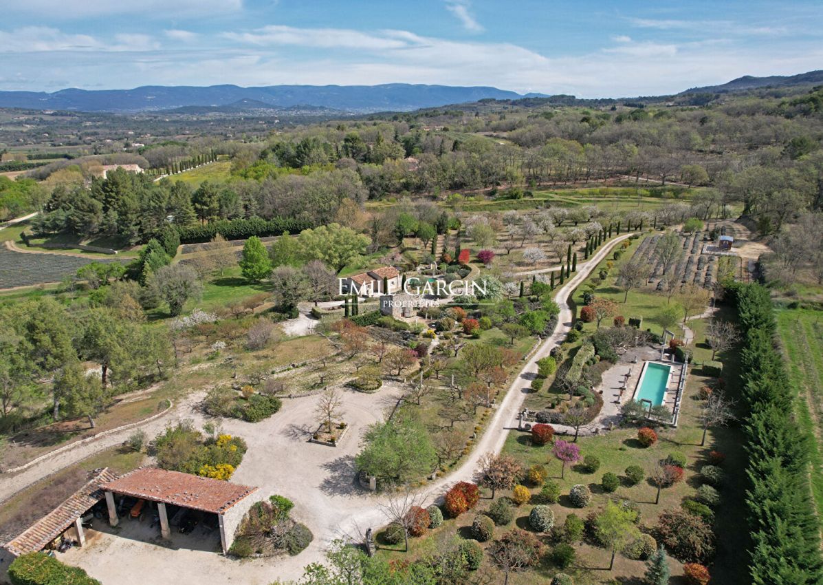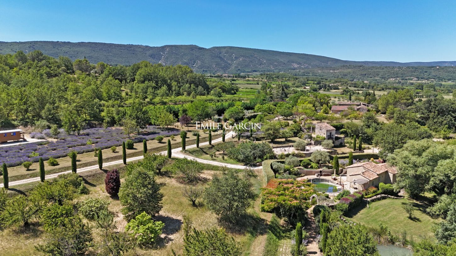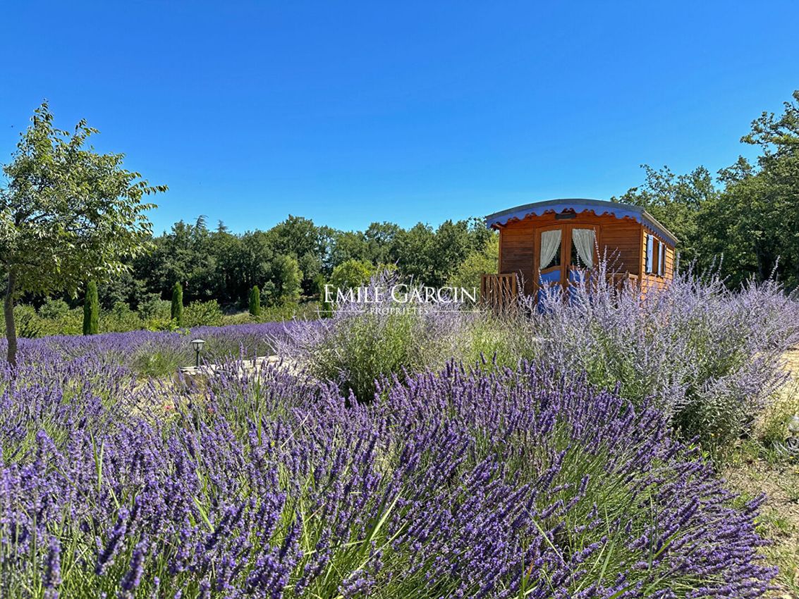 Située dans un environnement calme, à proximité immédiate des commerces et de la vie culturelle du Luberon, cette propriété en pleine nature remplie de charme offre un cadre de vie intimiste La maison principale, rénovée en 2010, se compose d'une cuisine, d'un salon avec cheminée, de deux chambres, d'une salle d'eau et de wc. Fonctionnelle et confortable, elle constitue un lieu de vie agréable, prêt à être occupé. A l'extérieur, un petit jardin abrite une piscine ronde, alimentée par une source, apportant fraîcheur et authenticité à l'ensemble. La propriété comprend également : Un ravissant pigeonnier avec vue, aménagé en chambre indépendante avec salle d'eau et WC. Une roulotte climatisée, nichée dans des lavandes, offrant une chambre romantique et atypique. Un couloir de nage complète les équipements extérieurs, idéal pour les amateurs de natation. Les jardins paysagers mêlent lavandes, fruitiers et essences méditerranéennes, ponctués de différents espaces propices à la détente ou aux jeux. Deux grands abris voitures complètent le bien. La propriété bénéficie de deux accès distincts, permettant d'envisager une privatisation partielle ou une organisation indépendante des espaces. Des travaux complémentaires pourraient encore renforcer le charme et révéler tout le potentiel de cette propriété idéalement située, conjuguant tranquillité et proximité des attraits du Luberon.