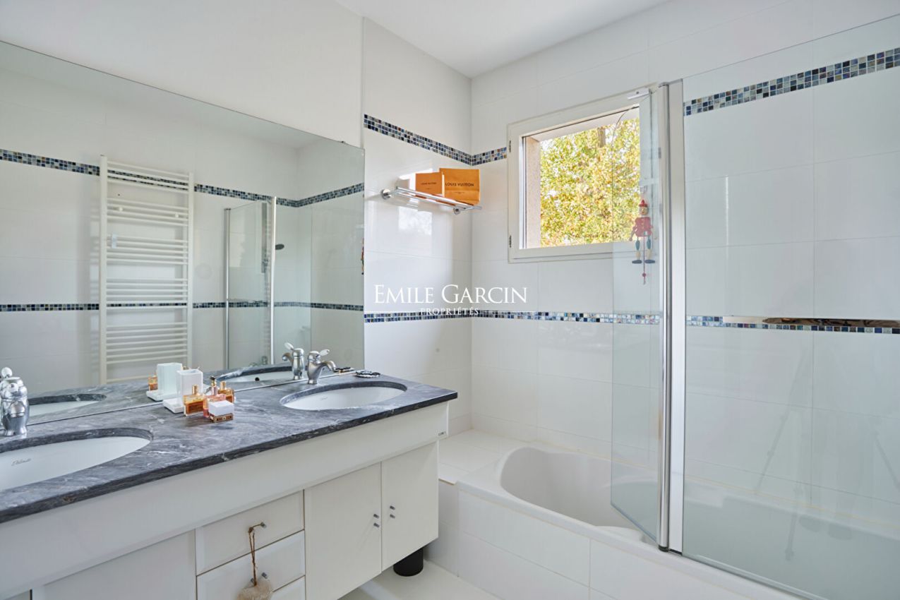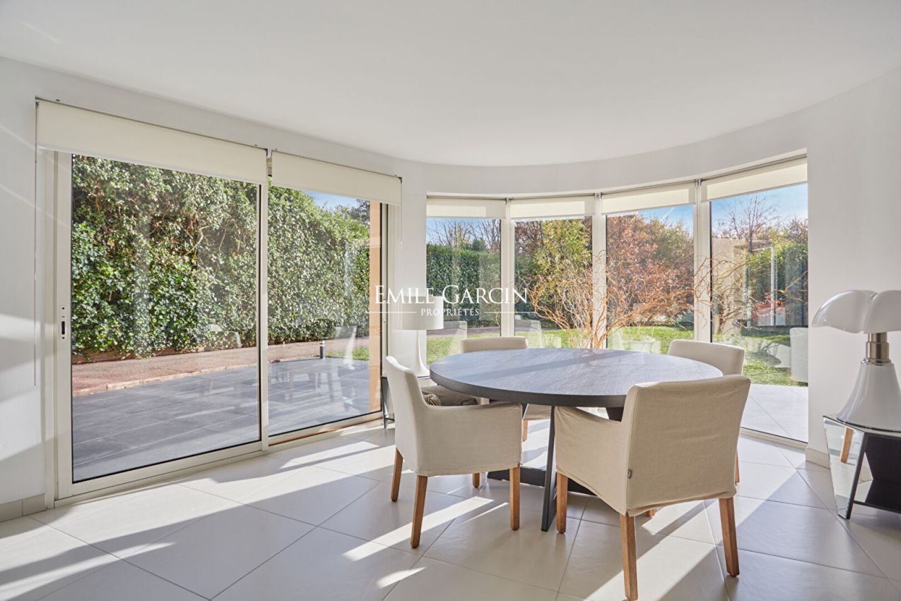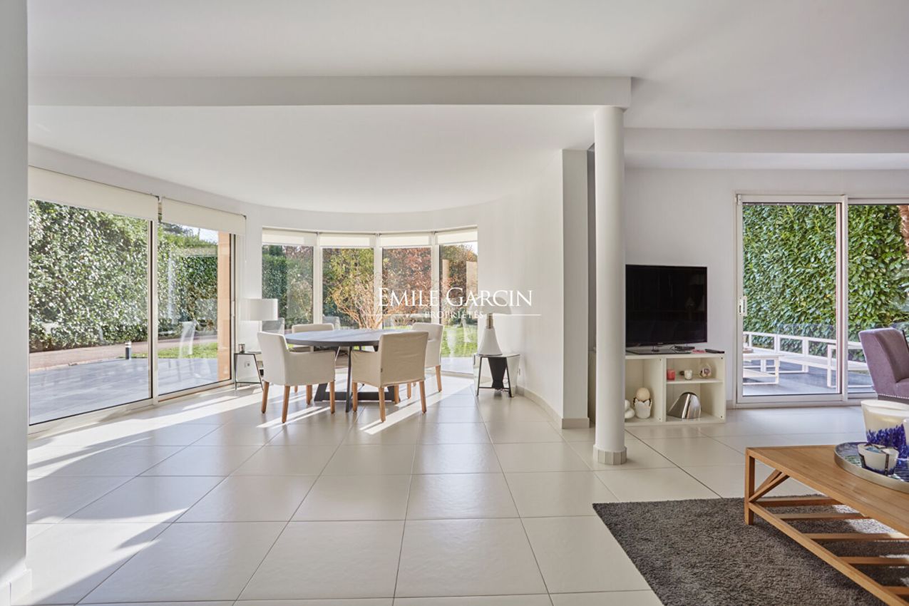 Une adresse discrète au coeur de la nature, aux portes de Paris. Située dans l'un des secteurs les plus prisés de La Celle-Saint-Cloud, en lisière de la forêt domaniale et à quelques minutes seulement de Vaucresson, cette élégante demeure contemporaine de 465 m² au sol ( 265 m² habitables) offre un cadre de vie rare, alliant sérénité et lumière. Exposée plein Sud et parfaitement préservée de tout vis-à-vis, elle développe 465 m² au sol dont 265 m² habitables, au sein d'un jardin privatif paysager d'environ 1 000 m². La maison s'ouvre, dès l'entrée, sur de généreux volumes. Le vaste séjour de 60 m², prolongé par de larges baies vitrées, offre un accès direct à une terrasse ensoleillée d'environ 50 m². La cuisine familiale, élégante et fonctionnelle, complète harmonieusement ce niveau. Une chambre ou bureau de plain-pied avec salle d'eau privative complète ce niveau. L'étage est composé d'une suite parentale avec terrasse, salle de bains et dressing. Trois chambres supplémentaires, une salle de bains/douche, ainsi qu'un espace sous combles d'environ 92 m² au sol ? idéal pour une salle de jeux, un atelier d'art, un bureau ou deux chambres additionnelles ? offrent une grande modularité pour une vie familiale. Le vaste sous-sol, chauffé et entièrement aménagé, est composé d'une pièce de 60 m² pouvant devenir un home cinéma ou une salle de sport, une buanderie, une cave et de nombreux rangements. Un jardin clos et ensoleillé ainsi qu'un garage double complètent cet ensemble. Une demeure entretenue avec soin DPE performant. Huisseries en double vitrage, ravalement récent, toiture révisée, finitions soignées. La propriété témoigne d'un entretien irréprochable depuis sa rénovation complète. A 10 minutes à pied de la gare reliant La Défense et Paris Saint Lazare, proche des commerces et d'établissements scolaires recherchés, français et internationaux et d'installations sportives.
