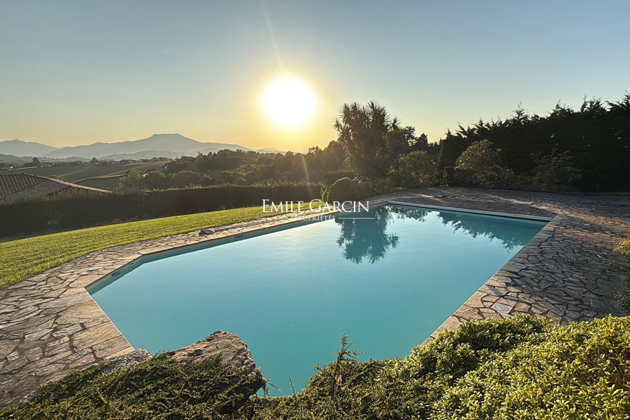 Légèrement en contrebas de la maison, la piscine généreusement dimensionnée s'entoure d'un solarium et de végétation, face à un panorama exceptionnel sur les sommets basques. Un véritable havre de paix en toutes saisons. Un abri de jardin vient compléter les prestations extérieures.
