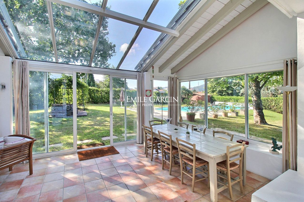 Idéalement située dans un quartier résidentiel calme, à seulement 10 minutes des plages de la côte basque et de Saint-Jean-de-Luz Cette charmante maison de famille séduit par son charme intemporel et ses volumes généreux. Développant 213 m² habitables, elle s'élève sur trois niveaux au coeur d'un jardin soigné de 3 077 m². Le rez-de-chaussée accueille une entrée, un salon chaleureux avec cheminée, ainsi qu'un espace salle à manger installé dans une véranda climatisée ouvrant sur le jardin. Deux chambres, dont une avec balcon, une salle de bains privative et une salle d'eau complémentaire complètent ce niveau.