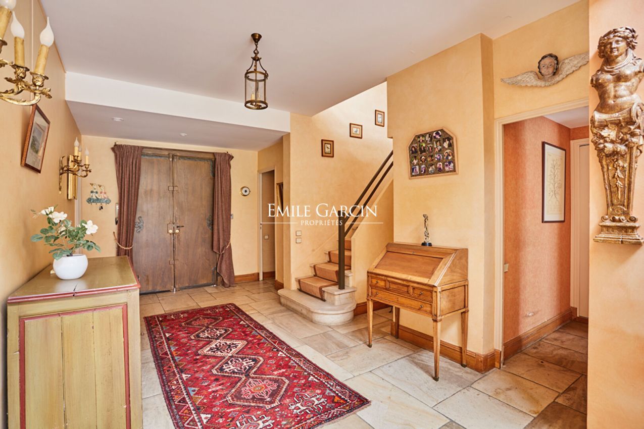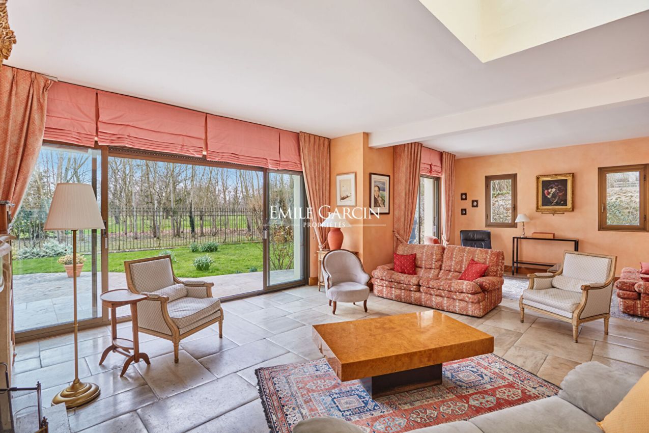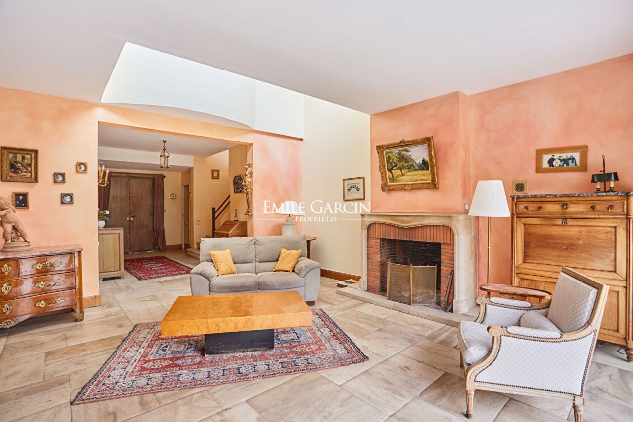 Versailles, en lisière du parc du château, un air de campagne en ville. Situation exceptionnelle et cadre privilégié pour cette élégante maison d'architecte, nichée au fond d'une impasse privée, à l'abri des regards et de toute nuisance. Son jardin s'ouvre directement sur le Parc du Château de Versailles, offrant un environnement verdoyant rare et recherché. Exposée plein Sud, la maison profite d'un ensoleillement optimal tout au long de la journée. Les larges baies vitrées et le séjour cathédrale baigné de lumière créent une atmosphère apaisante, où intérieur et nature ne font qu'un. Développant environ 222 m² habitables, la propriété s'organise sur plusieurs niveaux : Au rez-de-chaussée : Une entrée dessert un superbe séjour cathédral avec cheminée, prolongé par une salle à manger ouverte et une cuisine conviviale avec espace repas. Une suite parentale de plain-pied, avec dressing, salle de bains et toilettes, complète ce niveau. Toutes les pièces de vie s'ouvrent directement sur le jardin, invitant à profiter pleinement du cadre exceptionnel. Un garage d'environ 25 m² vient parfaire cet étage. A l'étage : Un vaste palier lumineux donne accès à une grande terrasse plein Sud. Deux chambres, également ouvertes sur la terrasse, disposent chacune de leur salle d'eau (bains pour l'une, douche pour l'autre). Deux spacieuses mezzanines offrent de multiples possibilités : chambres supplémentaires, bureau, espace lecture ou salle de jeux. Un WC indépendant complète ce niveau. En sous-sol : Une cave bétonnée d'environ 54 m² abrite les équipements techniques (chaudière gaz et ballon électrique) et propose un bel espace de stockage. Stationnement aisé avec le garage et la possibilité de garer deux à trois véhicules supplémentaires dans l'impasse. A proximité des commerces, installations sportives et établissements scolaires réputés, la gare de Versailles Rive Droite est accessible en 10 minutes à vélo. Une adresse rare pour les amoureux de calme, de lumière et de nature, aux portes du centre de Versailles. Honoraires 4% TTC charges acquéreurs