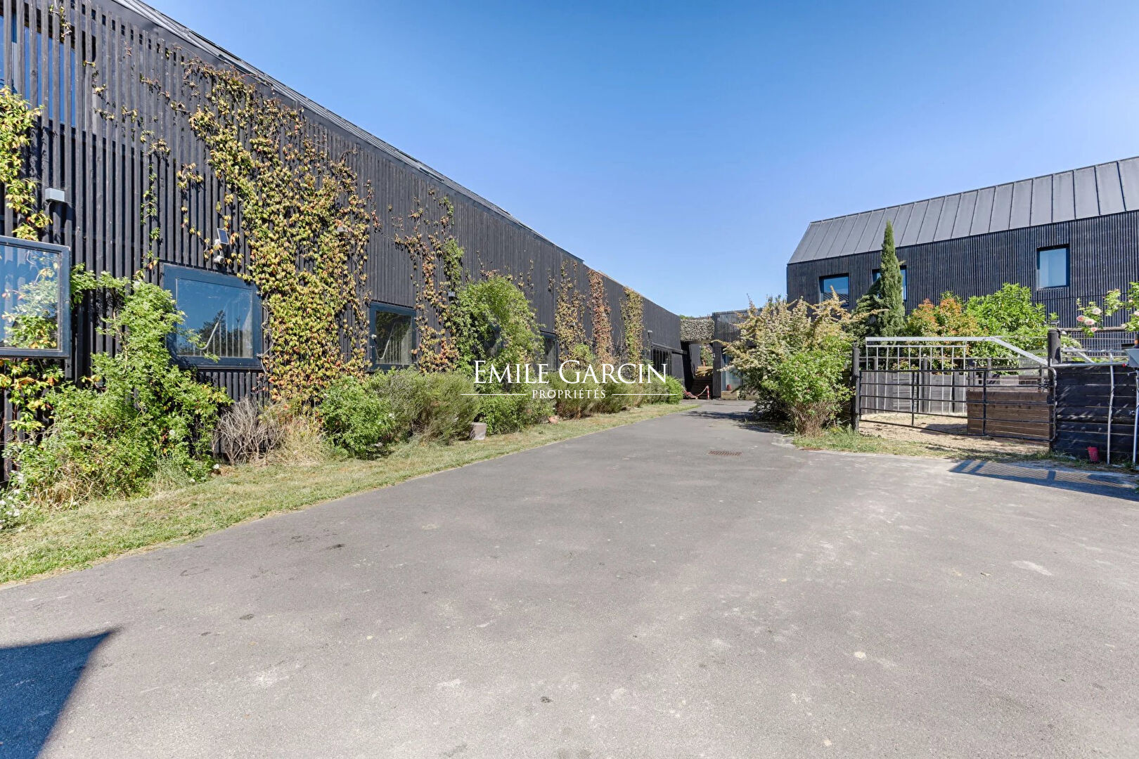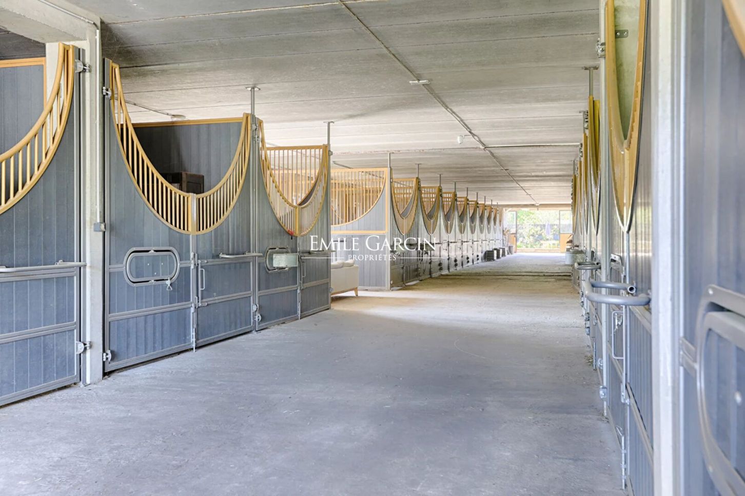 Pour la partie hippique : -Quatre paddocks en herbe pour les chevaux en pleine propriété d'une surface de 700m² et 4 autres d'une surface totale d'environ 4000 m² en jouissance exclusive complètent l'espace paysager d'un peu moins d'un hectare. -Une écurie créée en barn répondant aux dernières avancées technologiques concernant la sécurité et le confort de travail, avec 30 boxes très spacieux qui bénéficient d'une quadruple exposition, d'abreuvoirs automatiques et de mangeoires rotatives. Un marcheur 4 places pour chevaux complète l'installation hippique -Un autre bâtiment indépendant d'environ 90m² au sol et 6 m de hauteur, en béton cellulaire recouvert de bardage en bois et toiture en zinc fait face à l'écurie. -En cours de création au 1er étage du barn 4 espaces mixtes partie habitable et locaux de bureaux et espaces de travail de 50 m2 au sol. (3 sont en travaux, un est achevé). -Une partie de locaux professionnels de 170 m2 environ à aménager entièrement en plus (toiture en zinc à faire sur cette partie).