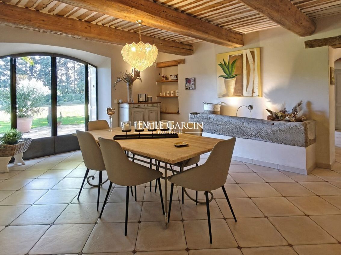 En campagne, non isolé, propriété remarquable composée d'un authentique mas provençal restauré avec soin composé de spacieuses pièces de vie, 4 chambres et un bureau. Un atelier attenant. Un garage pour deux véhicules, une chambre indépendante. L'ensemble est édifié sur un terrain paysager de 7 480 m² entièrement clos et agrémenté d'une belle piscine avec poolhouse face au Luberon, un spa avec jacuzzi et hammam, une oliveraie et un magnifique parc fleuri.