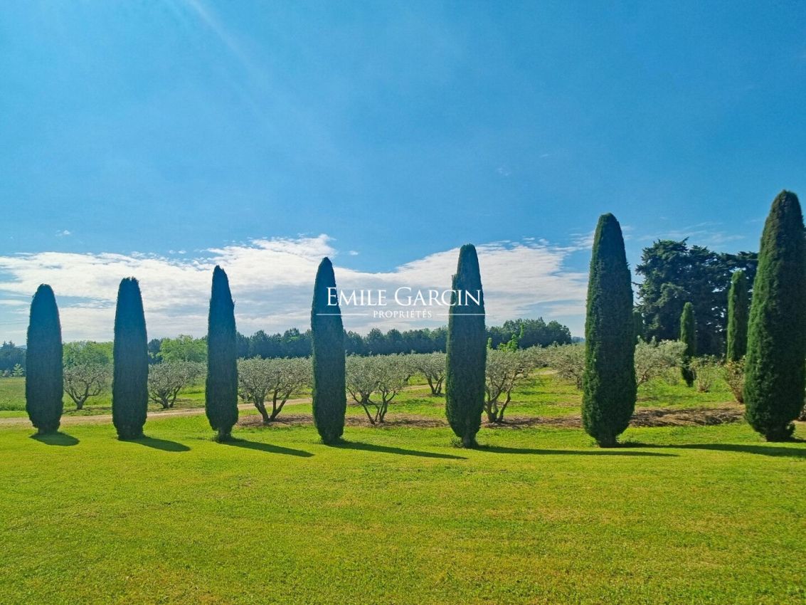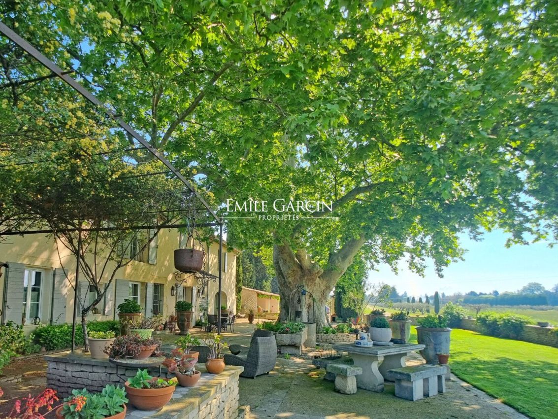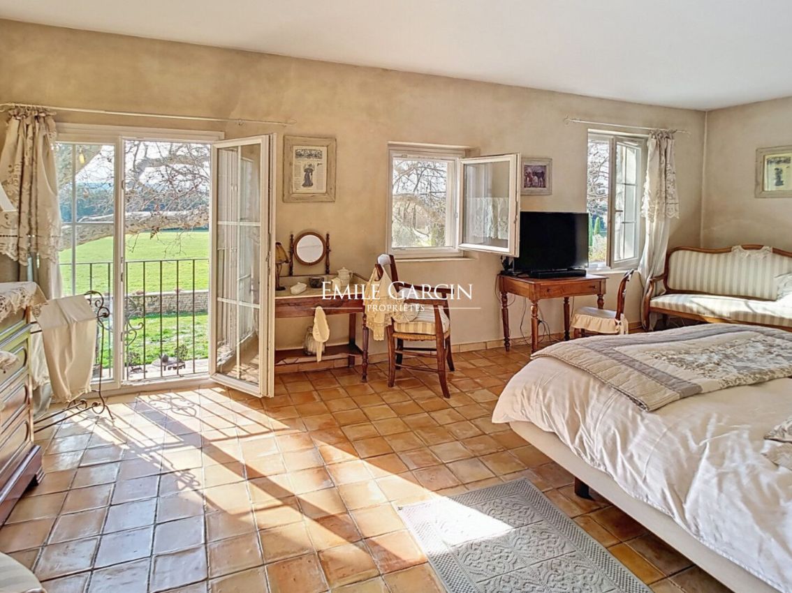 Magnifique propriété du XIXème siècle à vendre proche de l'Isle sur la Sorgue, dans le Vaucluse, sur un terrain 4,7 hectares, avec une piscine, garage, hangar et écuries. Située en campagne, au calme absolu, authentique mas en pierres rénové en 2007, ayant conservé le charme et les matériaux d'antan. D'une surface habitable de plus de 300 m², la propriété comprend une habitation principale ainsi qu'une dépendance. Dès l'entrée dans la cour intérieure du Mas vous serez subjugué par un somptueux platane remarquable âgé d'environ 400 ans, apportant une fraicheur naturelle l'été. Le rez-de-chaussée se compose d'un chaleureux salon avec poêle à bois, une cuisine équipée, une grande salle à manger de 47 m², un vaste salon de 52 m² s'ouvrant sur une véranda de 30m² face à la piscine. A l'étage : une lumineuse suite parentale de 27 m² avec une grande salle de bains privative, quatre autres chambres et deux salles d'eau. Les annexes : Buanderies, chaufferie, cave, grand garage de 67 m², un abri véhicules de 86 m², un hangar de 130 m², deux box à chevaux et une sellerie. La dépendance : Un pool-house de 60 m² composé d'un séjour, une cuisine, une chambre et une salle d'eau, vient compléter cette ravissante propriété. Le terrain d'une surface de 47 000 m², planté d'une oliveraie (pour la production d'huile d'olive) et d'une prairie pour les chevaux, est agrémenté d'une majestueuse piscine (15 x 7 m) chauffée et avec nage à contre-courant. Plusieurs forages alimentent la propriété. Les prestations : chauffage par géothermie, cheminée, poêle à bois, climatisations réversibles, panneaux photovoltaïques, double vitrage, arrosage automatique, portails automatiques, alarme, fosse septique. Sa situation : en campagne et à proximité des villages du Luberon, à 5 mn de l'autoroute A7, 30 mn de la gare TGV d'Avignon et à 45 mn de l'aéroport international Marseille Provence.