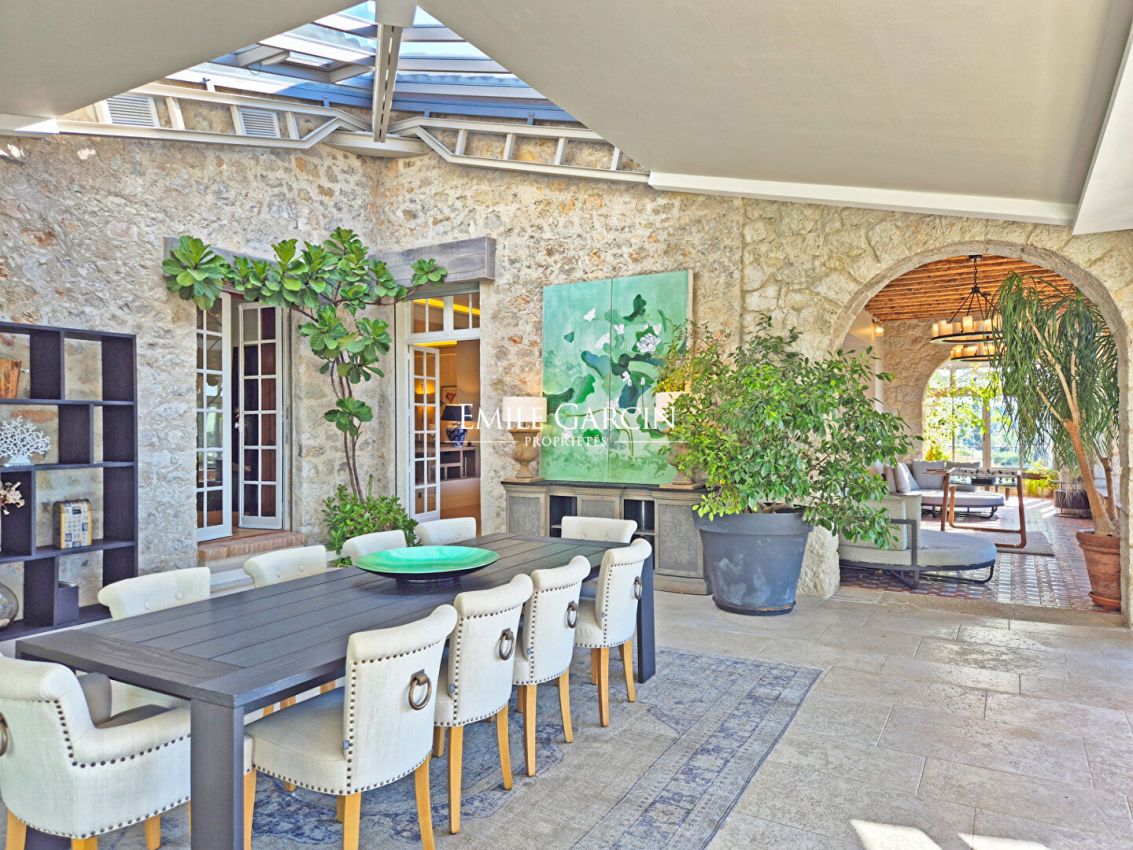 Située à 300m du vieux village de Mougins, cette propriété unique, datant du début du siècle dernier, porte en elle l'empreinte de charme et de noblesse de ces années dites folles. Située en position dominante, sur la colline de Mougins, elle n'est qu'à quelques pas du vieux village, de ses restaurants, boutiques et galeries d'art, et offre de superbes vues sur la mer et l'Esterel.