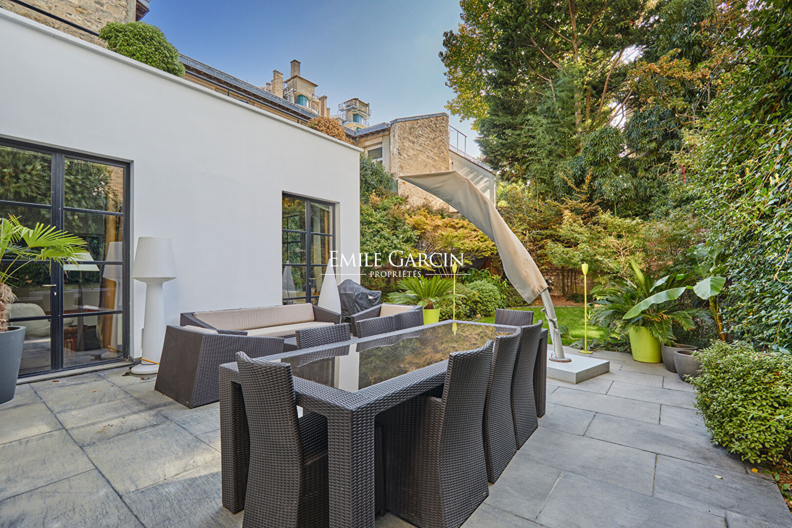 Rare et élégant hôtel particulier, lumineux et au calme, exposé Sud-Est. Situé dans une voie privée et confidentielle, ce bien se distingue par ses beaux volumes, sa hauteur sous plafond et ses agréables espaces extérieurs (jardin et terrasses).