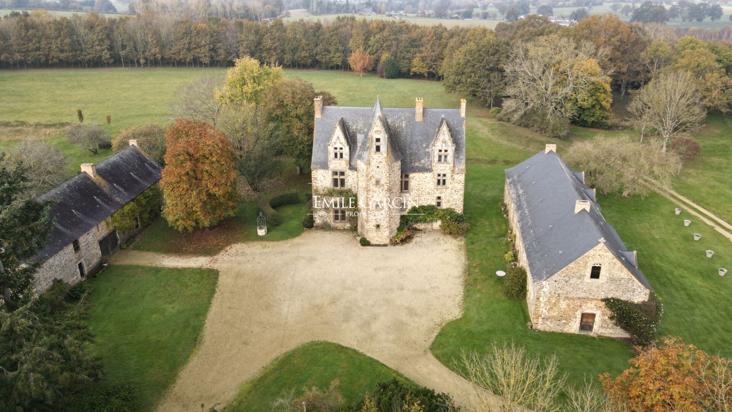 La propriété est située en Mayenne à 30 minutes de Laval et 60 km du Mans et 250 km de Paris. Elle est située proche d'un village avec toutes commodités, accès proche de l'autoroute. Le manoir ISMH d'une surface de 380 m² construit en 1522 est un très bel exemple de l'architecture régionale restauré dans les règles de l'art par les actuels propriétaires passionnés. L'accès se fait par un escalier à vis en granit qui nous transporte sur quatre paliers.