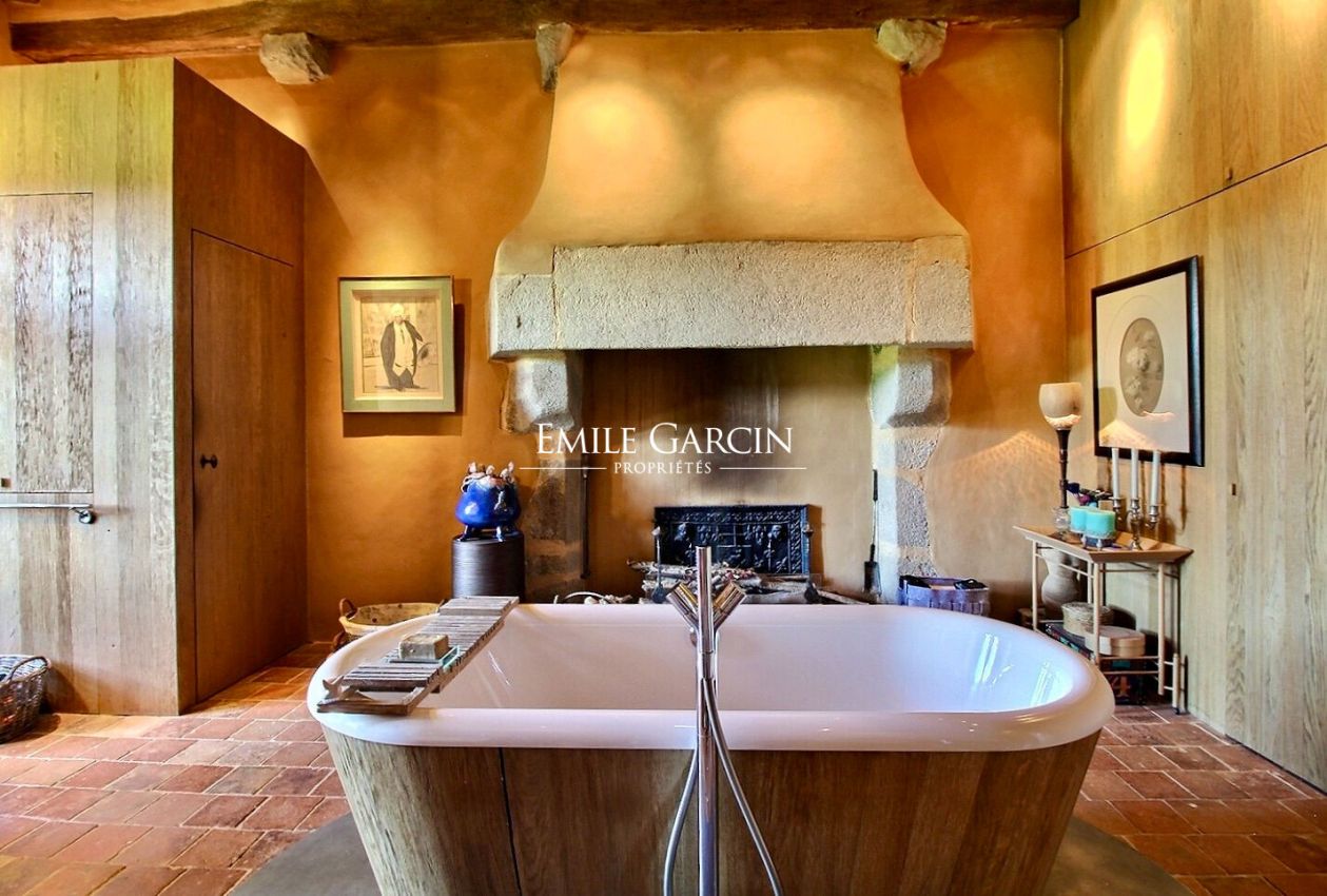Le premier, lieu de réception, et de la chair, les deux étages supérieurs au repos et en haut de la tour, une toute petite salle de guet. De nombreux éléments d'origine telles les cheminées, escalier à vis, tomettes, enduit à la chaux, les portes, les hauts plafonds nous font voyager dans le temps. Un long bâtiment de 370 m² entièrement restauré dans un esprit contemporain baigné de lumière au pied de la tour abrite un atelier show room, un grand salon avec cheminée, une salle d'eau, deux pièces pouvant faire office de chambres, une salle d'eau, une cave et un garage. A l'étage, un bureau, un salon, une pièce pouvant aussi se transformer en chambre. Face à celui-ci une dépendance à aménager à sa guise offrant de nombreuses possibilités de part sa surface de 300 m² environ sur deux niveaux. Une grange et un petit bâtiment agrémente le tout. Plus de 18 hectares préservent ce lieu, de belles allées cavalières, des bois, un étang de 3 hectares, un verger, des prés, jardin paysager, des prés et une nature luxuriante et sauvage. Un lieu enchanteur...