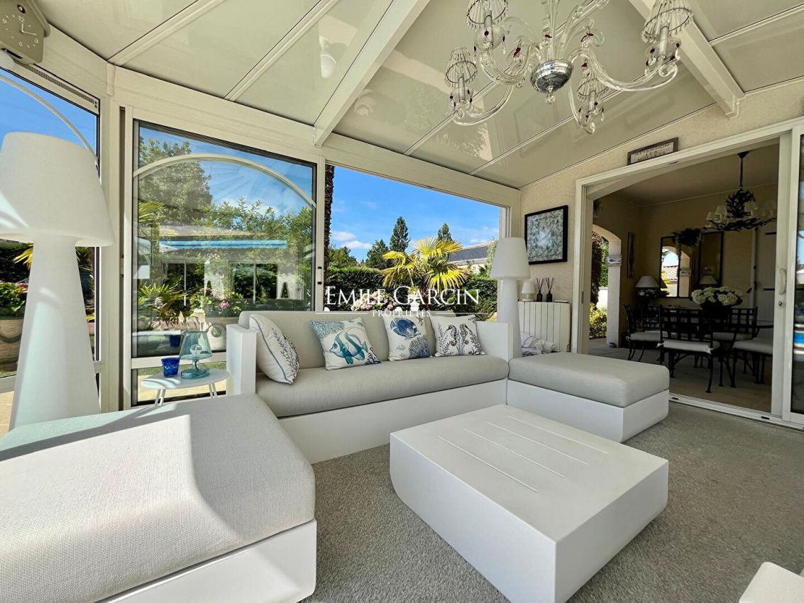 Les volumes généreux communiquent harmonieusement avec les espaces extérieurs : terrasses couvertes, pergola avec barbecue, et véranda chauffée face à la piscine permettent de passer des moments conviviaux en toute intimité.