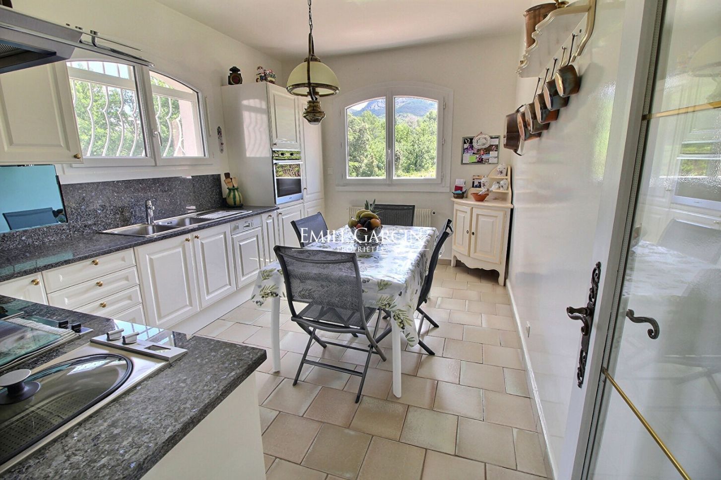 Nichée dans un environnement calme et verdoyant, cette propriété à vendre se situe à Trets, au pied du mont Olympe dans le massif des Auréliens et bénéficie d'une vue sur la Sainte-Victoire. La maison de 222 m² bénéficie d'une construction traditionnelle de grande qualité, répartie actuellement en deux appartements distincts (avec deux chambres pour chacun). Cette propriété entourée de verdure se love au sein d'un jardin de 6 850 m², agrémenté d'arbres de différentes essences, d'une belle oliveraie de 60 oliviers et d'un bel espace afin d'y établir une piscine. Double garage de 33 m². Cave. A découvrir absolument pour les amoureux de la nature et de la quiétude provençale.