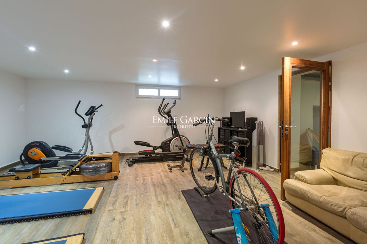 SAINT-NOM-LA-BRETÈCHE PROPRIÉTÉ CONTEMPORAINE D'EXCEPTION AU C?UR DE LA NATURE Nichée dans un environnement privilégié et verdoyant à Saint-Nom-la-Bretèche, cette propriété contemporaine d'exception déploie des volumes rares et des prestations haut de gamme sur près de 350 m² habitables (719 m² au sol), au sein d'un magnifique parc paysager de 2 580 m² exposé plein Sud. Dès l'entrée, le ton est donné : élégance, lumière et confort absolu. Le rez-de-jardin s'ouvre sur une belle réception de 64 m² avec cheminée, idéale pour recevoir, prolongée par une vaste terrasse baignée de soleil et un jardin sans vis-à-vis. Un bureau chaleureux avec poêle, ainsi qu'une cuisine familiale avec espace repas et cheminée, complètent cet espace de vie raffiné. Toilettes invités. A l'étage, un superbe escalier en pierre dessert un espace nuit parfaitement agencé : Une suite parentale avec dressing, salle de bains/douche et toilettes Trois chambres lumineuses Une salle de bains avec WC Une salle d'eau avec WC Un grand bureau modulable, pouvant aisément être transformé en deux chambres supplémentaires selon vos besoins Au dernier niveau, les combles isolés et aménagés offrent un espace supplémentaire idéal pour une chambre, un bureau ou une salle de loisirs. Le sous-sol total, véritable espace dédié au bien-être et à la fonctionnalité, propose des prestations rares : Piscine intérieure Salle de sport avec douche Cave à vin Buanderie et locaux techniques Garage pouvant accueillir jusqu'à 6 véhicules, équipé d'une borne de recharge électrique Situation idéale pour les amateurs de golf, à proximité immédiate des parcours de renom de Noisy-le-Roi et Saint-Nom-la-Bretèche. Accès rapide à l'A13, gare de Noisy à seulement 3 minutes, et desserte scolaire facilitée vers Saint-Germain-en-Laye et Versailles.