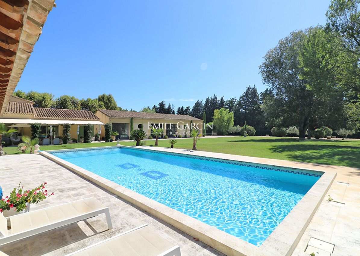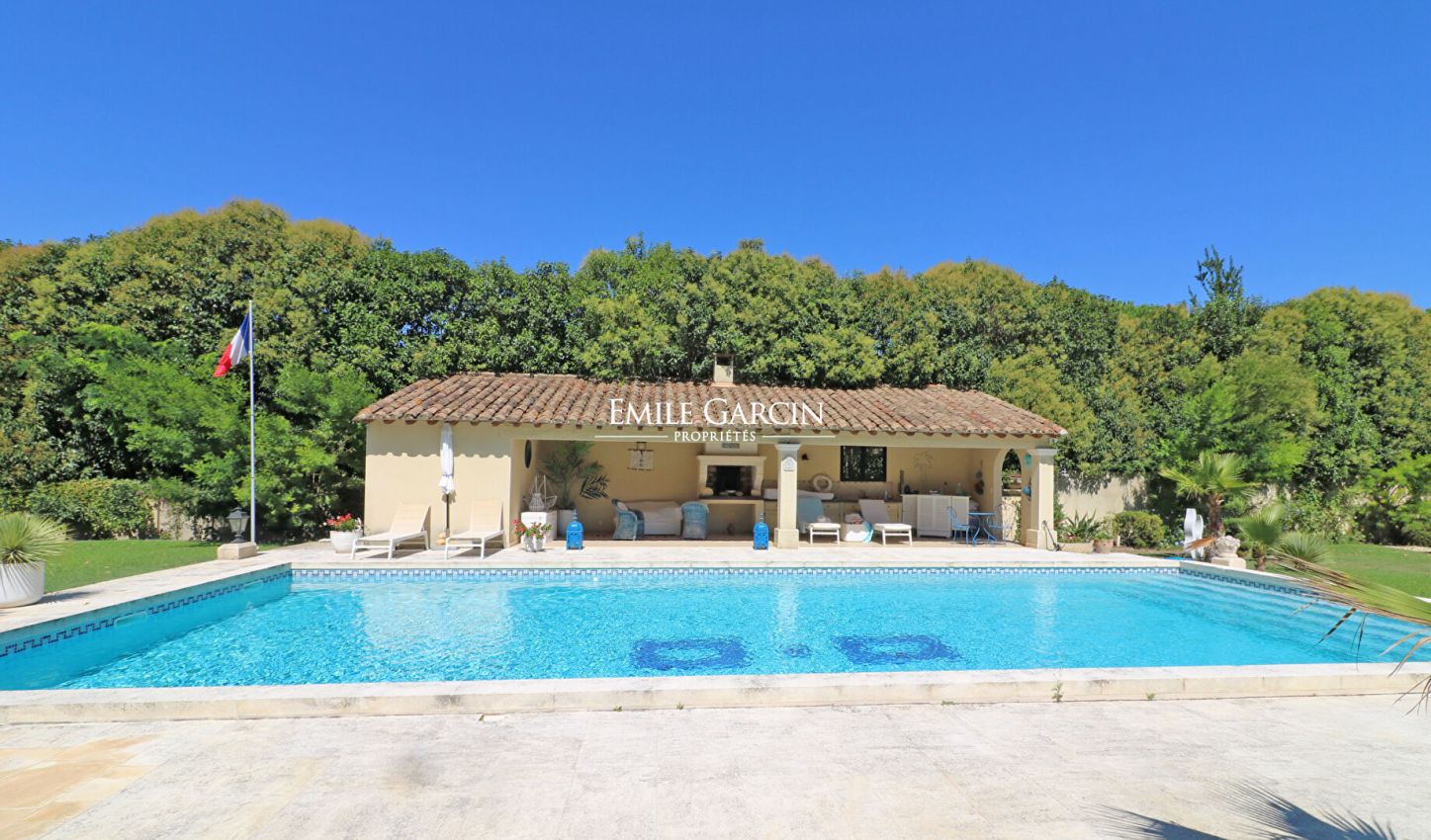 Très belle propriété parfaitement entretenue entourée d'un parc magnifiquement arboré sur environ 2 hectares, avec oliveraie et arbres fruitiers, à 2,5 km du centre-ville. Environnement de campagne. La majeure partie de la maison est bâtie de plain-pied avec des pièces lumineuses, et comprend 5 chambres et leurs salles de bains, dont une suite parentale en rez-de-chaussée, sur environ 280 m² habitables.