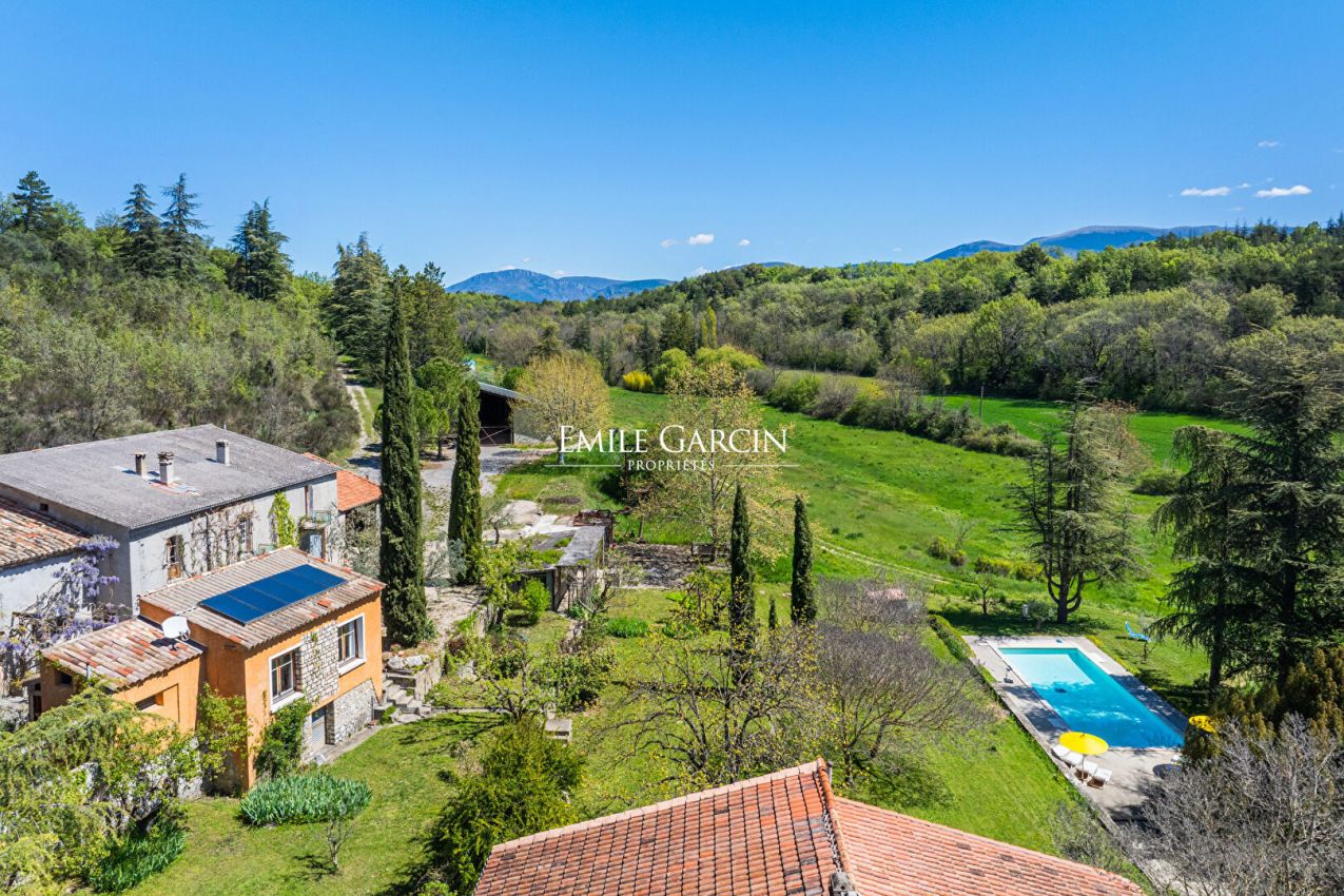 Cette magnifique propriété à vendre au milieu de 10 hectares de bois et de terres vous attend avec ses deux très grandes maisons et ses nombreuses dépendances. Son verger vous offrira de grandes variétés d'arbres fruitiers, ses nombreux oliviers fournissent une excellente huile d'olives quand ses deux grandes serres en permaculture assurent une autonomie maraîchère. Le grand étang, le ruisseau aux abords de la propriété, la source souterraine et le forage fournissent une eau en abondance et des espaces où il fait bon se prélasser. Ce site enchanteur est idéal pour se ressourcer grâce à la belle énergie dégagée par la nature généreuse entourant le lieu. Bien que raccordée au réseau Enedis, cette propriété pourrait être totalement autonome en électricité grâce à ses 108 panneaux photovoltaïques posés sur le toit du grand hangar de 500 m². De nombreuses possibilités d'en faire un lieu de séminaire, de ressourcement et/ou de réception existent grâce aux nombreux espaces restés libres d'aménagement.