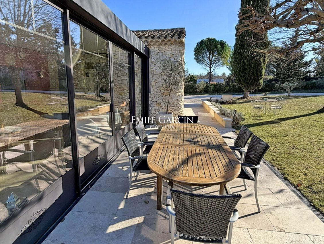 A 9 kilomètres du centre historique d'Aix-en-Provence, propriété de charme totalement rénové de 194 m² habitables au coeur d'un jardin paysager de 6 256 m². Volumes généreux des pièces de réception, hauteur sous plafond, luminosité, larges ouvertures sur le jardin. Belle piscine, grand garage, atelier et carport pouvant accueillir jusqu'à cinq véhicules. Cette propriété séduit par la qualité de ses matériaux et son architecture de caractère, à proximité immédiate du centre ville d'Eguilles, de Puyricard et d''Aix-en-Provence.