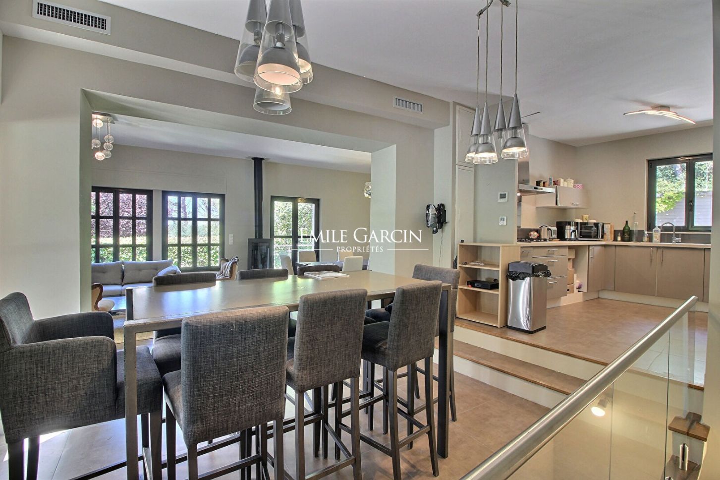 A seulement 3 km du centre historique d'Aix-en-Provence, cette propriété entièrement rénovée de 160 m² est nichée sur un terrain paysager de 2 800 m², elle conjugue confort moderne et esprit provençal. L'entrée s'ouvre sur une belle pièce de vie avec salon, salle à manger et poêle à bois, ainsi qu'une cuisine ouverte entièrement équipée. L'espace nuit propose deux chambres, une salle de bains et une suite parentale avec dressing et salle d'eau. En rez-de-jardin, deux chambres supplémentaires, avec salles d'eau privatives et accès indépendant, permettent d'accueillir famille ou invités en toute intimité. La maison dispose également d'une spacieuse buanderie, d'un carport pour deux voitures avec borne de recharge, de deux abris de jardin et d'un superbe pool house avec cuisine d'été. Exposée plein Sud, elle bénéficie d'un bel ensoleillement, d'une piscine au sel chauffée et d'un jardin arboré équipé d'une tonte robotisée et d'un arrosage automatique alimenté par le Canal de Provence. Une maison idéale pour vivre aux portes d'Aix-en-Provence, entre nature et élégance.