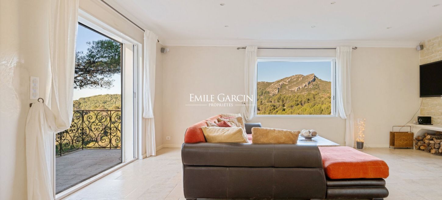 Sur un terrain arboré de 7 500m2 en zone verte, en position dominante, superbe bastide de style provençal de 350m2 , offrant une vue imprenable sur les collines du Garlaban chères à Marcel Pagnol.