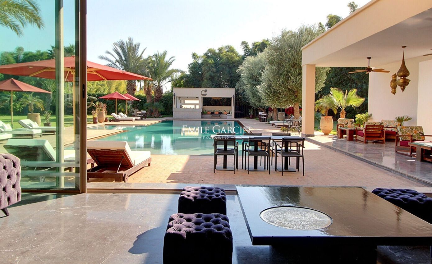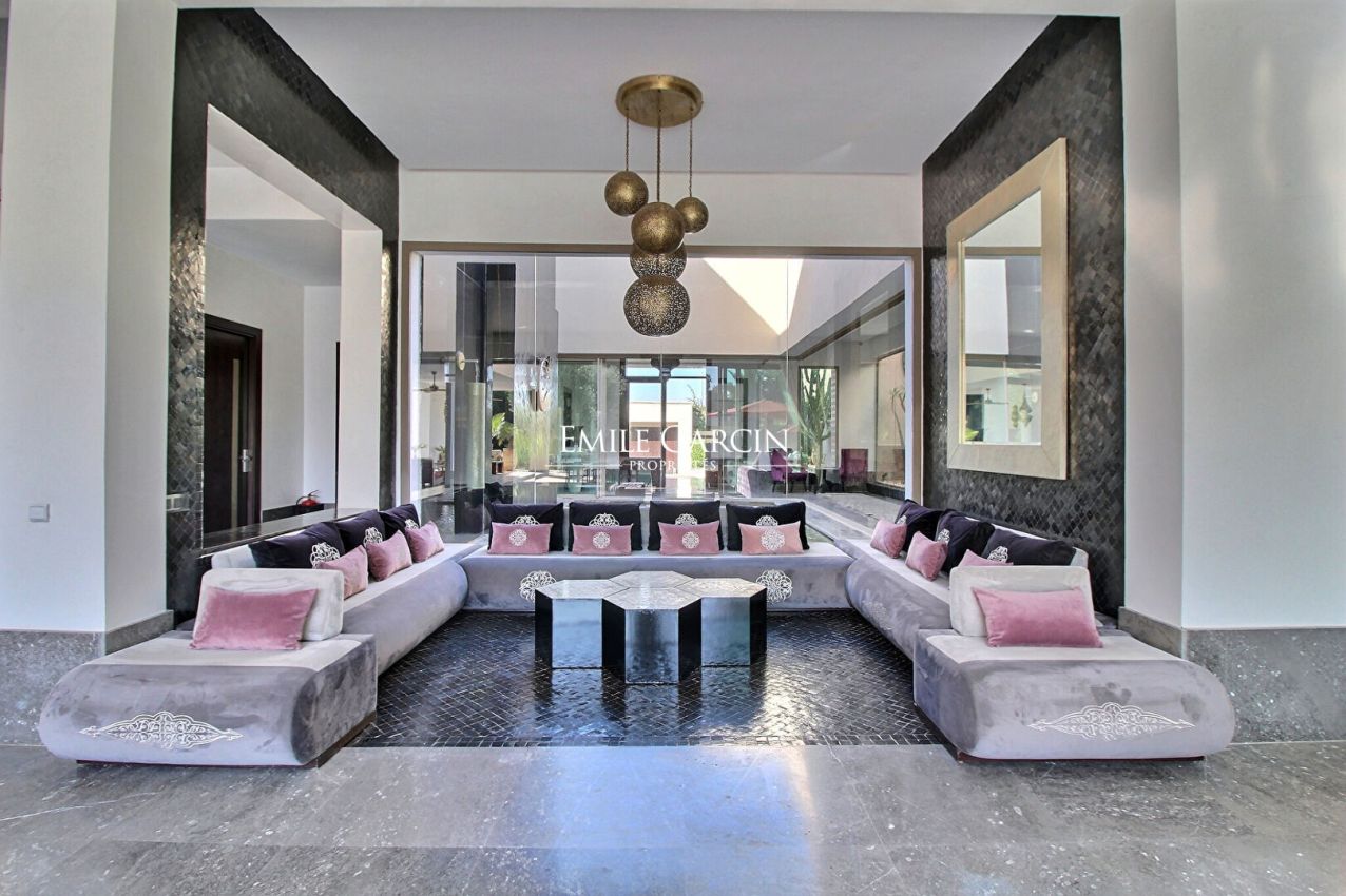 A quelques minutes du centre-ville, magnifique propriété de 1300 m² sur un parc paysager de 4000 m² avec une vue époustouflante sur les montagnes de l'Atlas.
