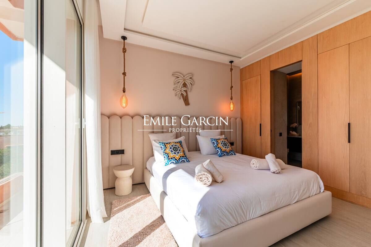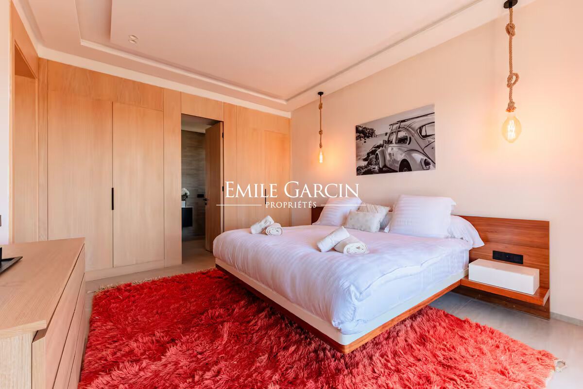 Conçue pour offrir confort et élégance, la villa se compose d'une réception avec salon cheminée et salle à manger, cuisine semi-ouverte entièrement équipée donnant directement sur le salon, arrière-cuisine avec local technique et espace de rangement, 5 chambres chacune avec balcon et salle de bain individuelle.