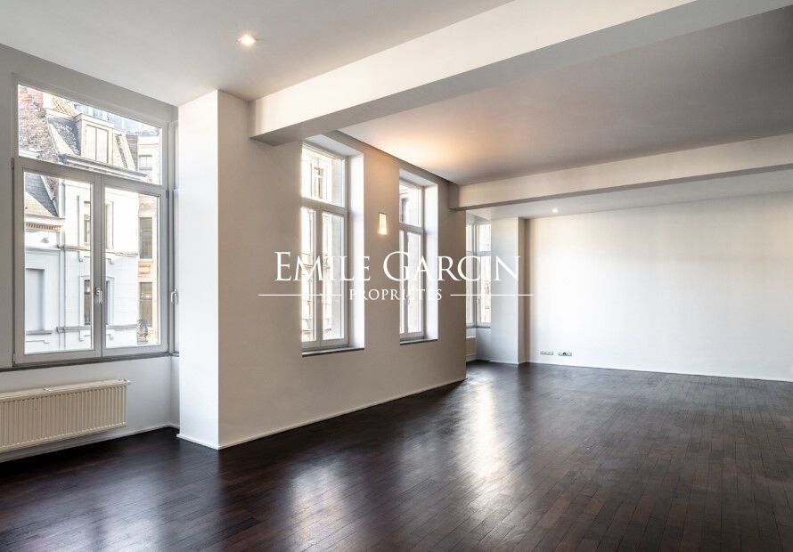 Au coeur du quartier historique du Sablon, situé au 2e étage d'un immeuble de caractère construit en 1895 de style néo-Renaissance flamande et repris à l'Inventaire du patrimoine architectural de Bruxelles, magnifique appartement d'environ 115 m² (PEB). Entièrement rénové avec soin par un bureau d'architecture d'intérieur, il occupe toute la longueur de la façade avant, soit 12 mètres, et bénéficie d'une exceptionnelle luminosité grâce à ses grandes baies vitrées et ses deux loggias ensoleillées.