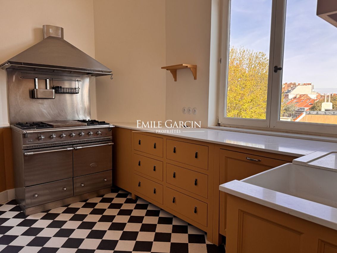 Au dernier étage d'un petit immeuble des années 1930, dans un quartier smart et vivant, ce ravissant appartement de 160m² ( selon PEB) a été entièrement rénové avec soin. Les hauts plafonds avec moulures, les cheminées en marbres et un joli parquet d'époque ont été restaurés et apportent du caractère et un style élégant à l'appartement. Il propose des réceptions spacieuses et très bien exposée avec une vue au-dessus de la cime des arbres, trois chambres, deux salles d'eaux, une cuisine équipée et quatre terrasses. Trois chambres de services, quatre caves ainsi qu'un garage box fermé complètent ce bel appartement. PEB F Photos d'aménagements à titre informatif non contractuel