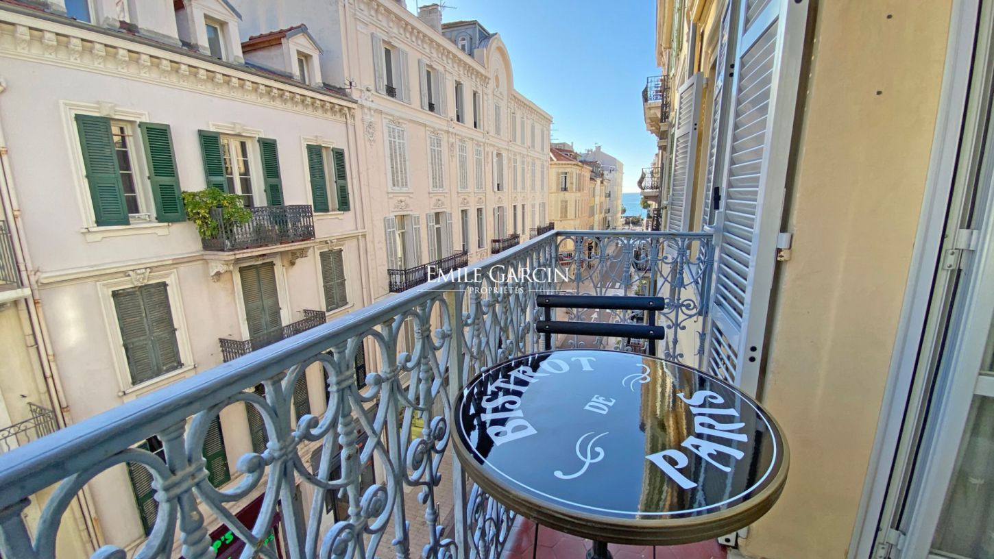 Belle cuisine ouverte sur le salon, accès direct au balcon agrémenté d'une petite table de brasserie le tout donnant sur la rue avec aperçu mer. Ascenseur privé. Ideal pour congrès (MIPIM, Film Festival, MIPCOM, LIONS etc...).