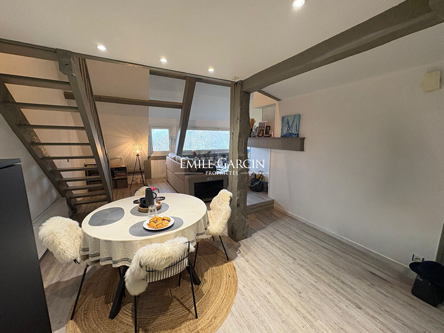 Situé à Tourgéville , aux portes de Deauville, proche des commerces, au deuxième étage d'une résidence récente, magnifique duplex de 33 m² refait à neuf avec vue mer comprend un salon, une cuisine aménagée et équipée, ouverte sur le coin repas et un espace buanderie. En mezzanine une chambre et une salle d'eau. Une cave complète ce bien.