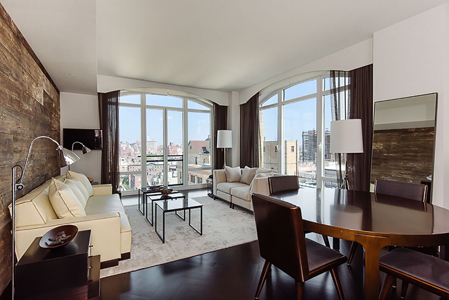 Flottant au-dessus du West Village au Superior Ink Condominium, cette captivante maison d'angle de deux chambres et deux salles de bains située au 16ème étage offre une vue enivrante sur l'Empire State Building, le West Village et des vues obliques sur le fleuve Hudson. Il s'agit des deux chambres les plus hautes du bâtiment avant le Penthouse.