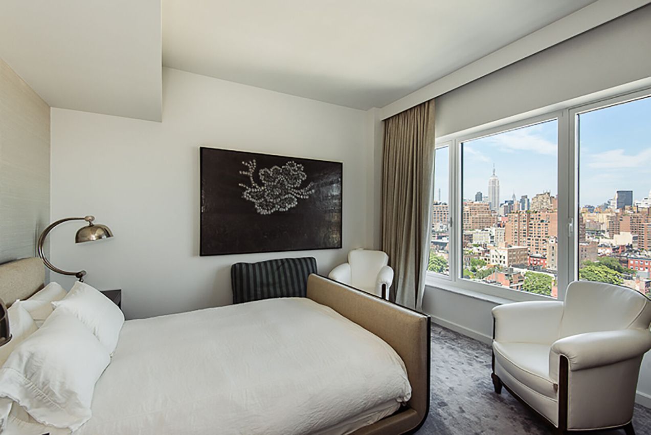Une grande galerie d'entrée séparée mène à un salon d'angle avec des baies vitrées et un balcon Juliette donnant sur le West Village. Le dessus personnalisé de la cuisine avec appareils Viking et Subzero s'ouvre sur le salon et est divisé par un îlot central parfait pour se divertir. La cuisine équipée sur mesure comprend une vue latérale sur la rivière Hudson. La suite principale offre les mêmes vues ouvertes à couper le souffle sur West Village et comprend une salle de bain principale luxueusement aménagée avec baignoire et cabine de douche et un dressing séparé avec de spacieux dressings. La deuxième chambre comprend une salle de bain joliment équipée juste à l'extérieur de la chambre qui sert également de salle d'eau pour les invités. L'appartement est complet avec une buanderie à côté du hall d'entrée.