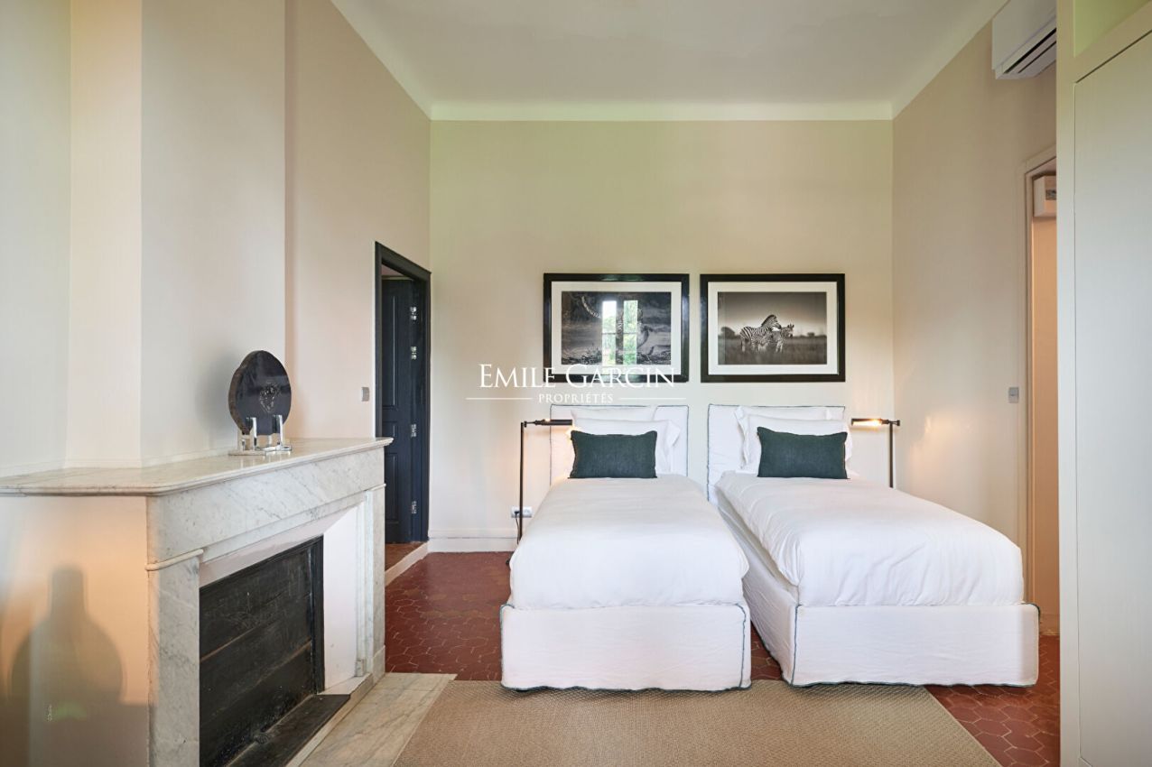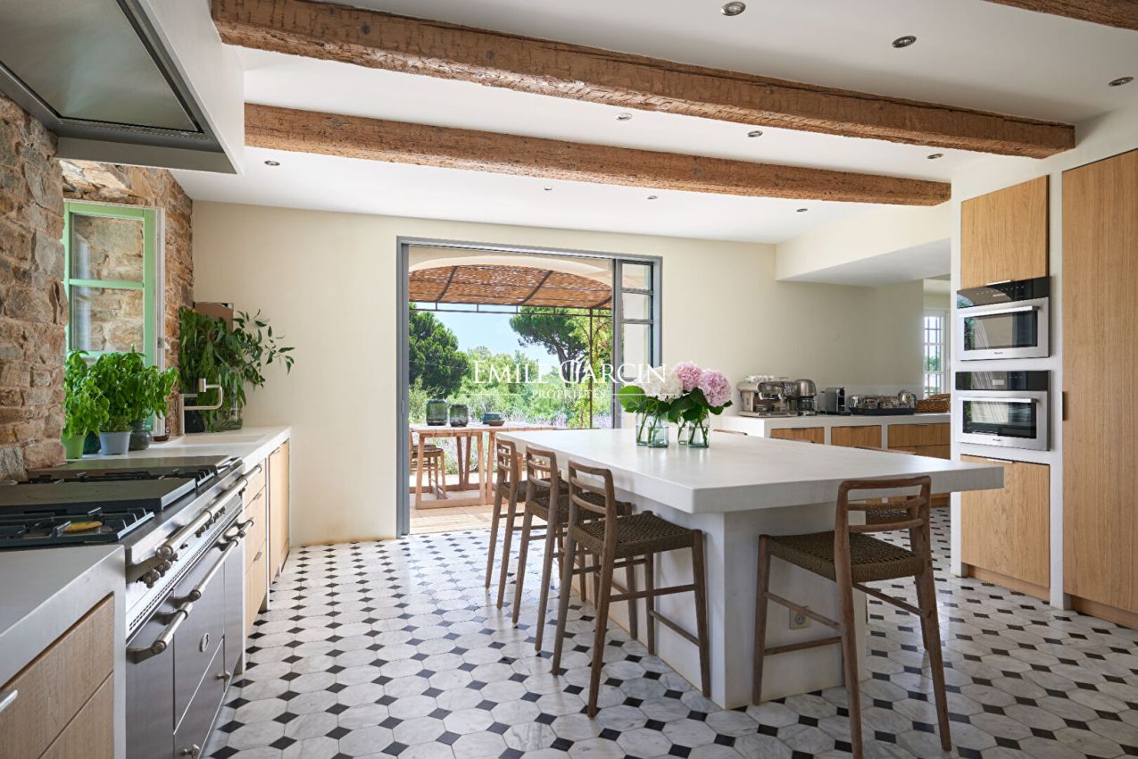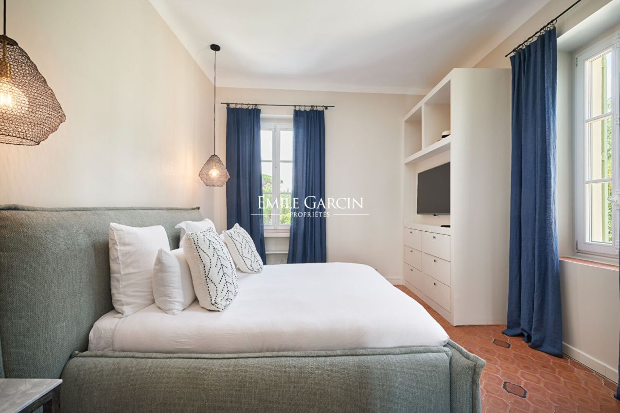 Idéalement située, à mi-chemin entre le centre de Saint-Tropez et les plages de Pampelonne, magnifique propriété de 700m² datant du 19ème siècle et entièrement rénovée . Grand jardin paysagé. 7 chambres, 5 salles de bains. Piscine. Terrasses aménagées. Terrain de pétanque. Salle de sport. Chef Cuisinier inclus Numéro d'enregistrement : 83101000645 GO