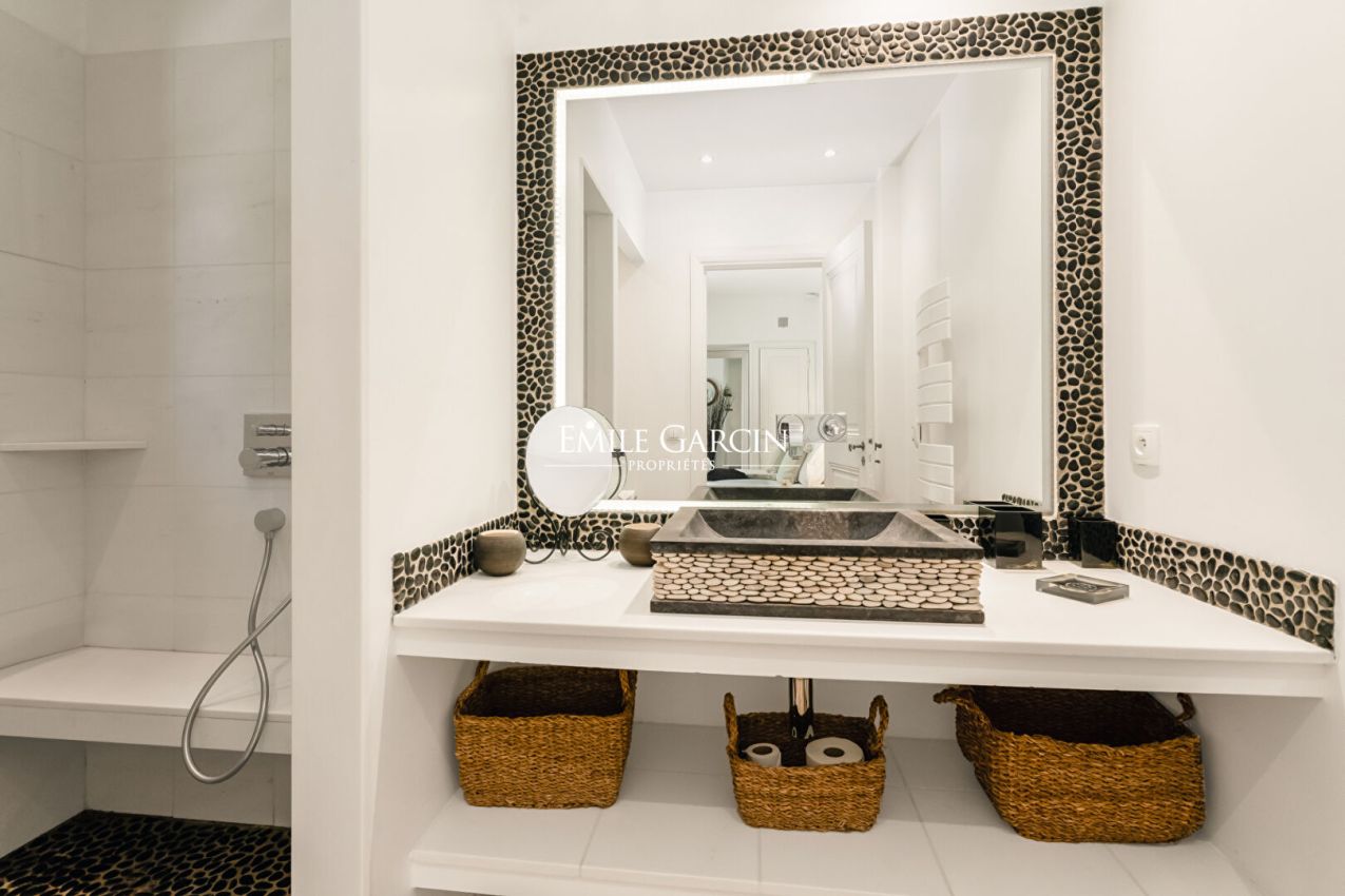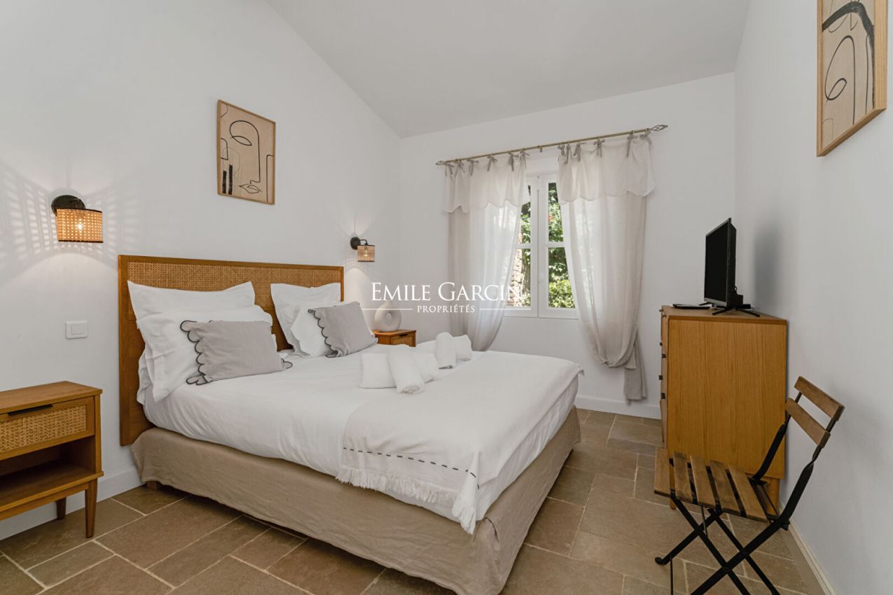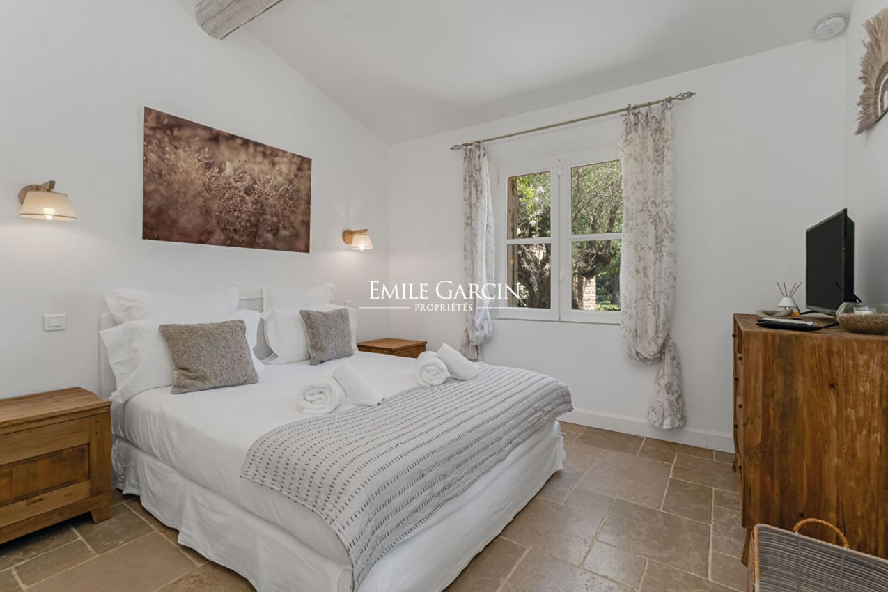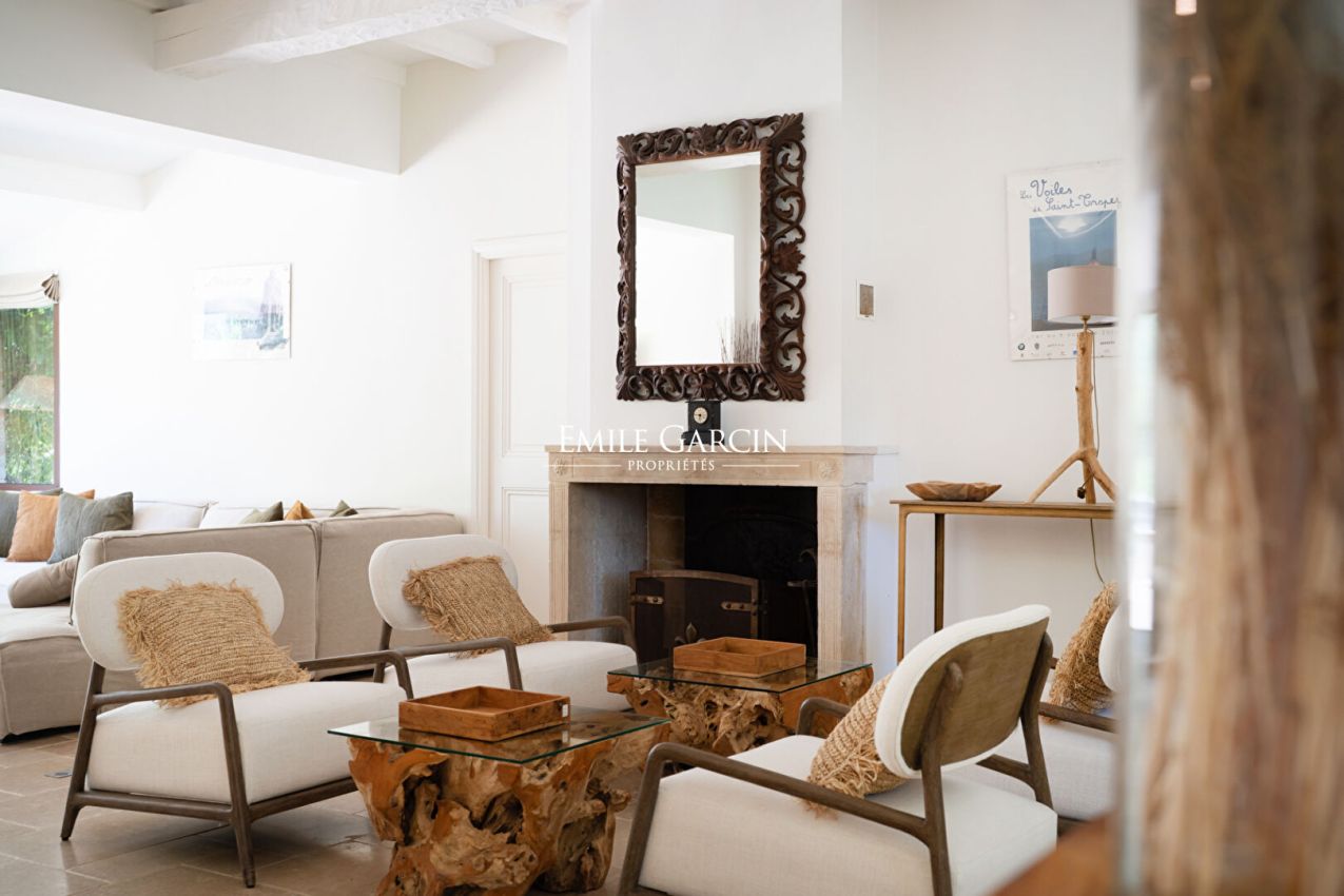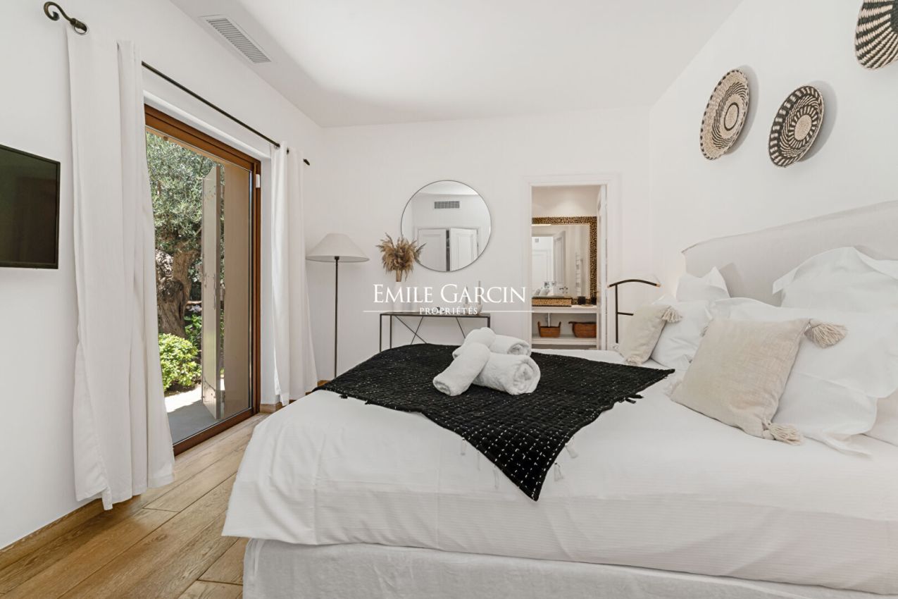 Dans un environnement calme et privilégié, mas de type provençal , entièrement rénové, de plain-pied avec piscine. Cette élégante bastide de 200 m² propose des prestations de qualité, à 300 mètres à pied de la plage de Pampelonne. 3 Chambres dans la maison principale + 2 chambres indépendantes avec un accès extérieur. Chacune possède sa propre salle de bains et est composée d'une terrasse privative ouverte sur le jardin. Piscine sécurisée . Terrain de pétanque.