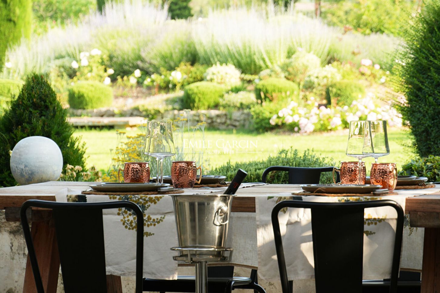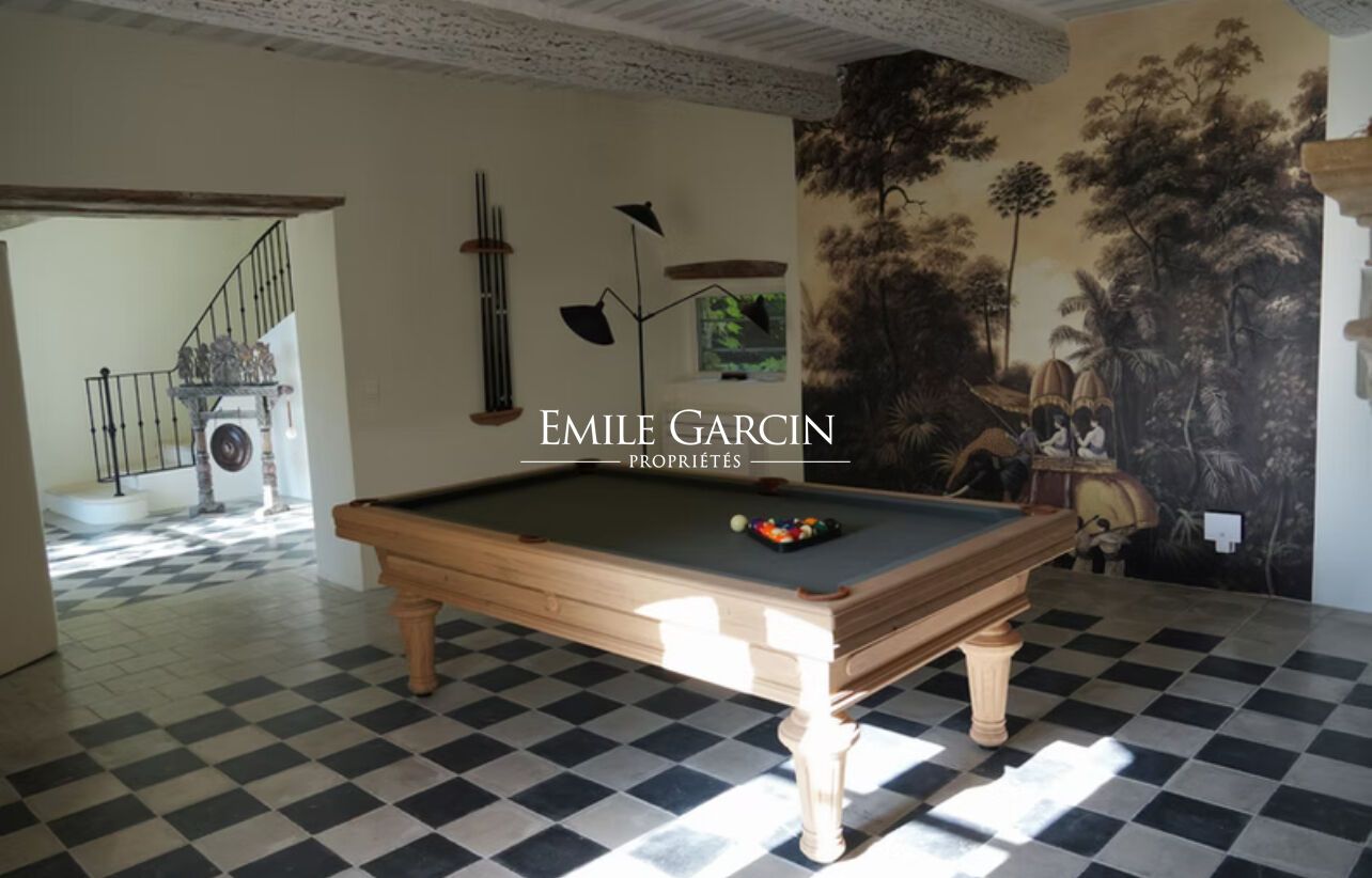 En extérieur, le jardin paysager se déploie autour d'une piscine chauffée aux lignes douces, offrant une vue imprenable sur les collines du Luberon. Les différents espaces aménagés -terrasses ombragées, coin repas sous pergola, terrain de pétanque éclairé, espaces lounge- rythment les journées et prolongent les soirées d'été dans une ambiance paisible et inspirante. Un billard est également mis à disposition pour les moments de détente en intérieur. Des prestations haut de gamme complètent cet ensemble exceptionnel : borne de recharge pour véhicule électrique, vaste parking privé, services de conciergerie personnalisés. Le tout dans un environnement calme, à proximité immédiate des chemins de randonnée, des marchés provençaux et des villages emblématiques du Luberon. Une invitation à vivre une parenthèse enchantée au coeur d'un décor naturel préservé, où chaque détail a été pensé pour offrir une expérience authentique et inoubliable. Les petits plus de la propriété: -air conditionné -piscine chauffée -plusieurs espaces extérieurs pour les repas -2 salons d'été -table de billard -terrain de pétanque -barbcue au gaz Nous contacter pour plus de renseignements