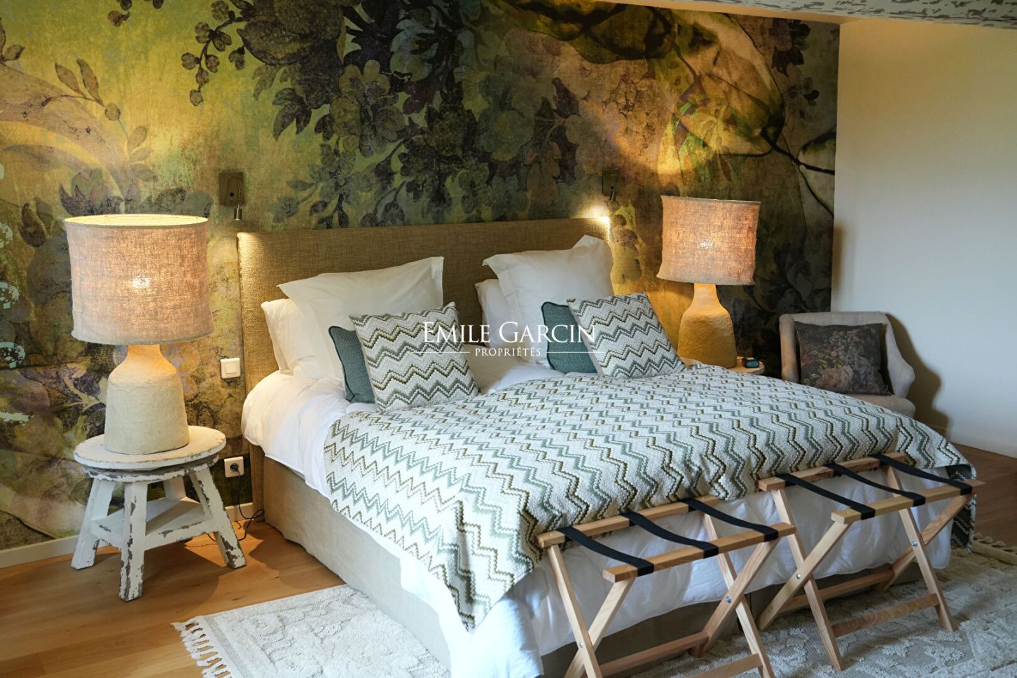 A quelques pas du village d'Oppède, au coeur d'un paysage préservé, cette demeure de caractère incarne une interprétation contemporaine et élégante de l'art de vivre en Provence. La maison accueille 7 chambres en suite, toutes climatisées et aménagées avec un soin particulier du détail, permettant de recevoir jusqu'à 14 hôtes dans une atmosphère à la fois apaisante et raffinée. Les espaces intérieurs, baignés de lumière naturelle, séduisent par leur harmonie et leur confort. Le salon, agrémenté d'une cheminée, invite aux moments de lecture ou de convivialité, tandis que la salle à manger, ouverte sur le jardin, crée un cadre idéal pour les repas en famille ou entre amis. La cuisine professionnelle, parfaitement équipée, offre un espace adapté à la préparation de mets gourmands, qu'ils soient réalisés par les hôtes ou un chef à domicile.
